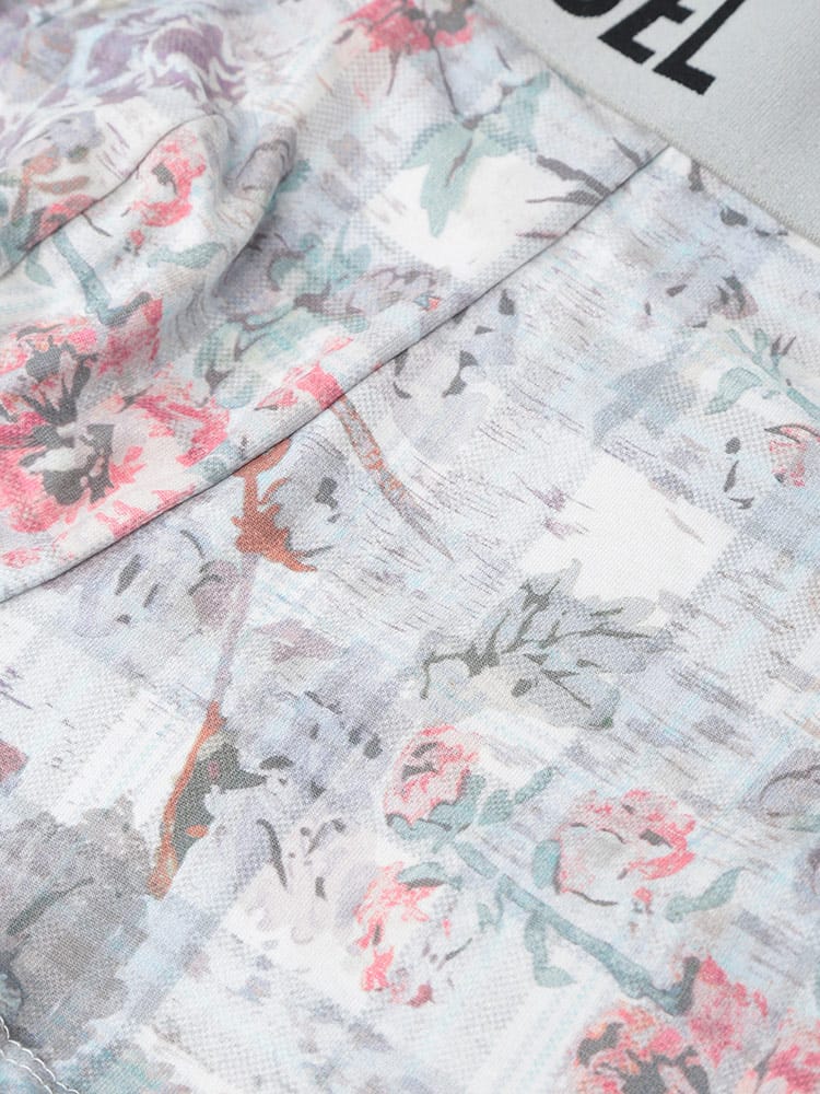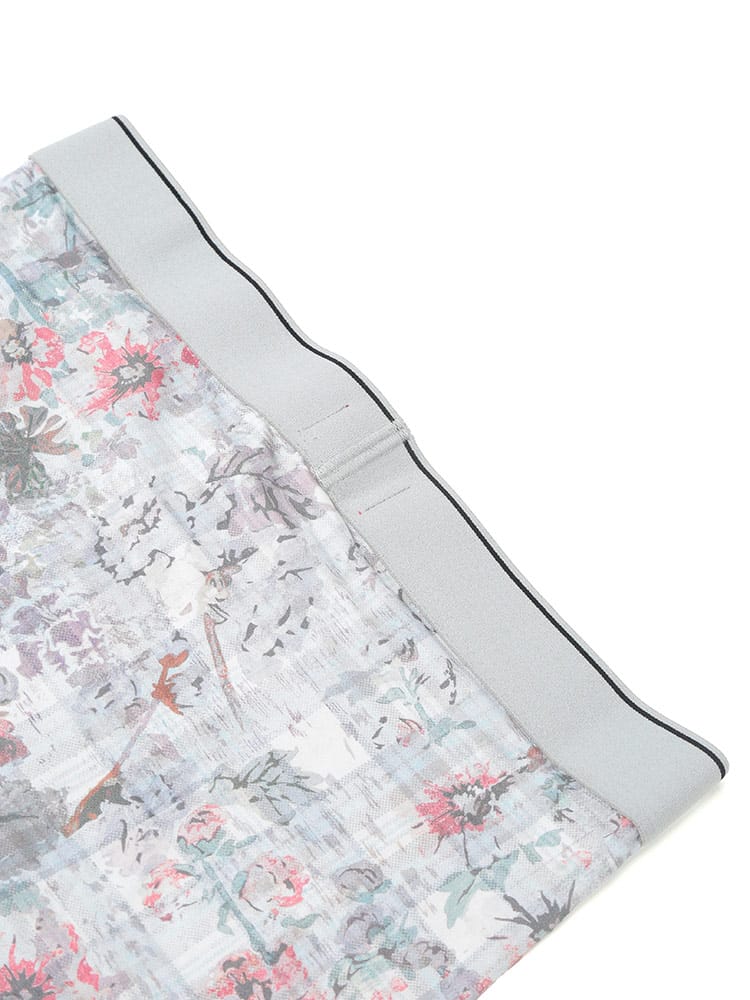 フラワー&チェックの総柄で表情豊かに仕上げたボクサーパンツ。伸縮性のあるウエストバンドにジャカードロゴを配置。やわらかなコットン素材と適度なストレッチで、はき心地も良好の一着です。