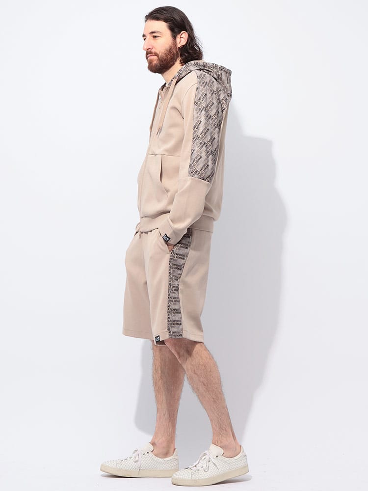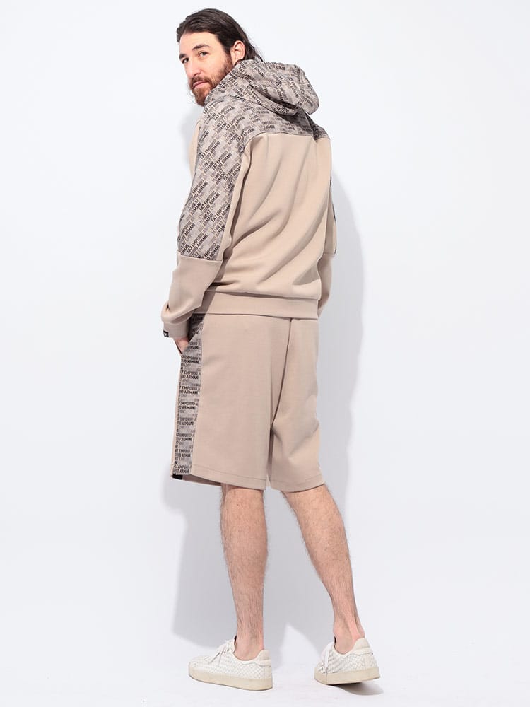スポーティな魅力と洗練されたデザインを兼ね備えた、EA7のモノグラムロゴがフードと肩・袖にデザインされたフルジップパーカーです。モノグラム柄と無地の切り替えがスタイリッシュな印象を与え、カジュアルなスタイルのアクセントになります。ジムやスポーツシーンはもちろん、普段使いにもおすすめです。