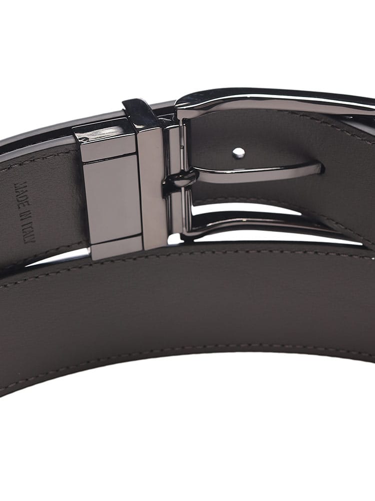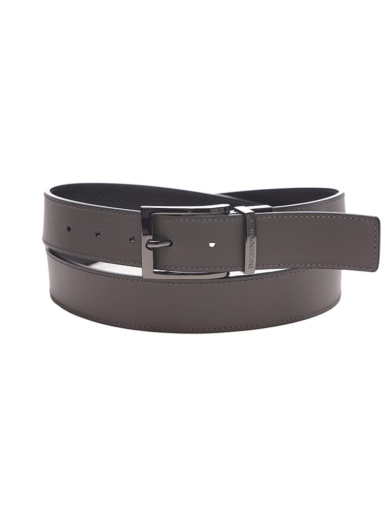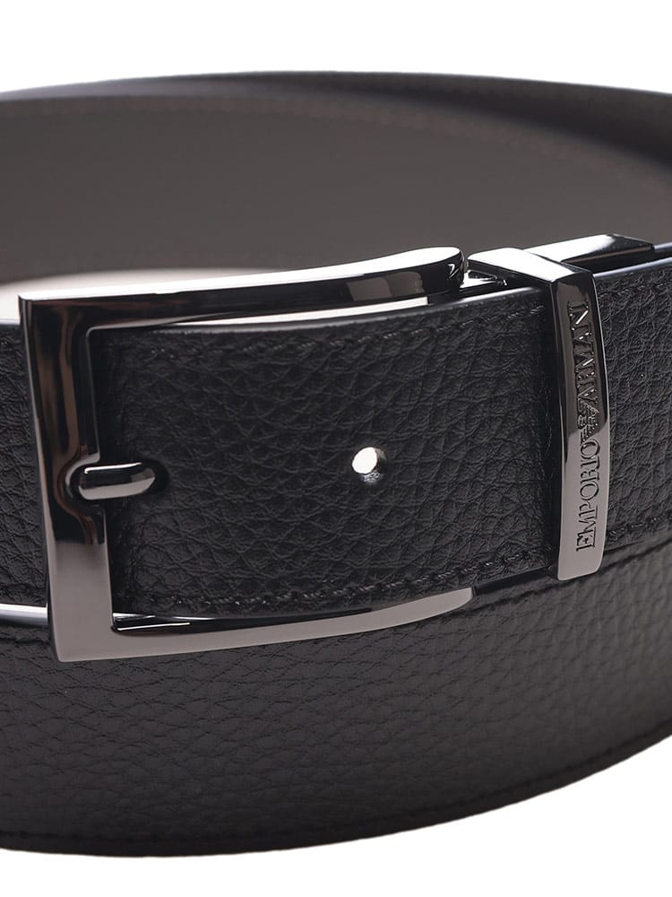 シーンを選ばない、エンポリオアルマーニのリバーシブルシボレザーベルト。ビジネスからカジュアルまで、幅広いシーンで活躍するエンポリオアルマーニのリバーシブルシボレザーベルト。上質なレザー素材は、使い込むほどに味わいを増し、長く愛用いただけます。リバーシブル仕様なので、その日の気分やスタイルに合わせて2つの表情を楽しめるのが魅力。片面はビジネスシーンに最適なスムースレザー、もう片面はカジュアルな装いにマッチするシボレザー。バックルは、エンポリオアルマーニのロゴがさりげなく刻印された、シンプルで洗練されたデザイン。噛み合わせ留めタイプなので、ベルトの長さ調節も簡単。ジャストフィットで快適な着用感を提供します。ビジネスシーンでは、スーツスタイルに上品なアクセントをプラス。カジュアルシーンでは、デニムやチノパンと合わせて、ワンランク上の着こなしを演出。