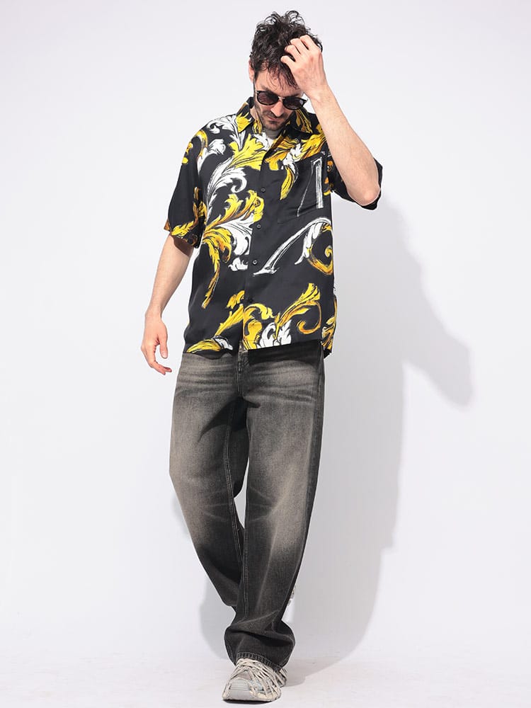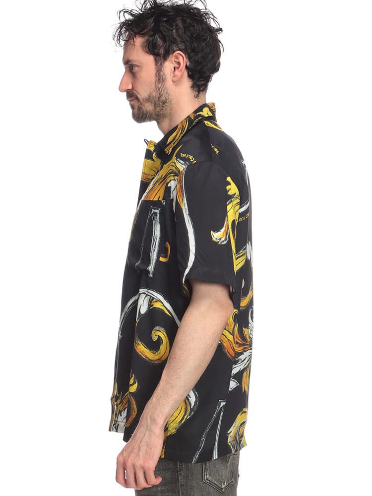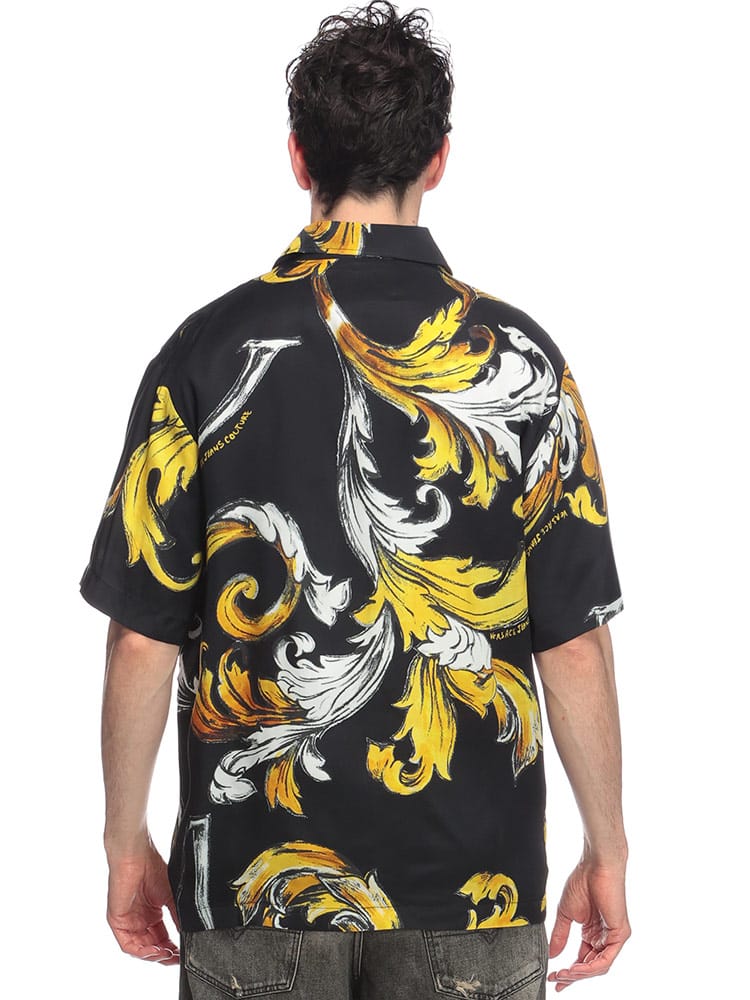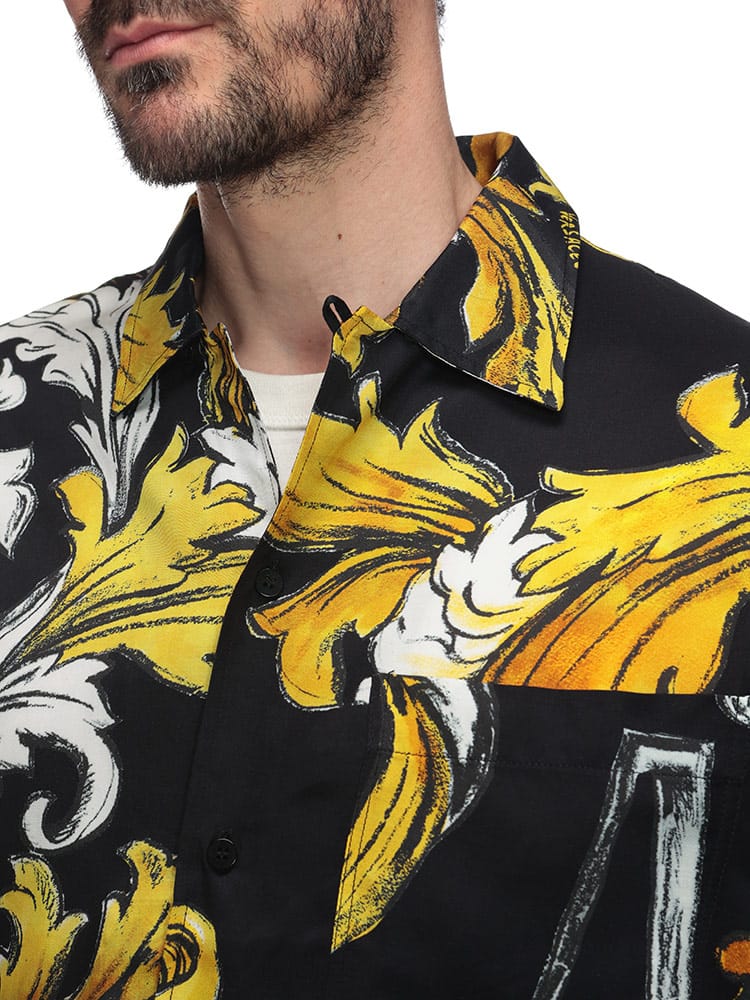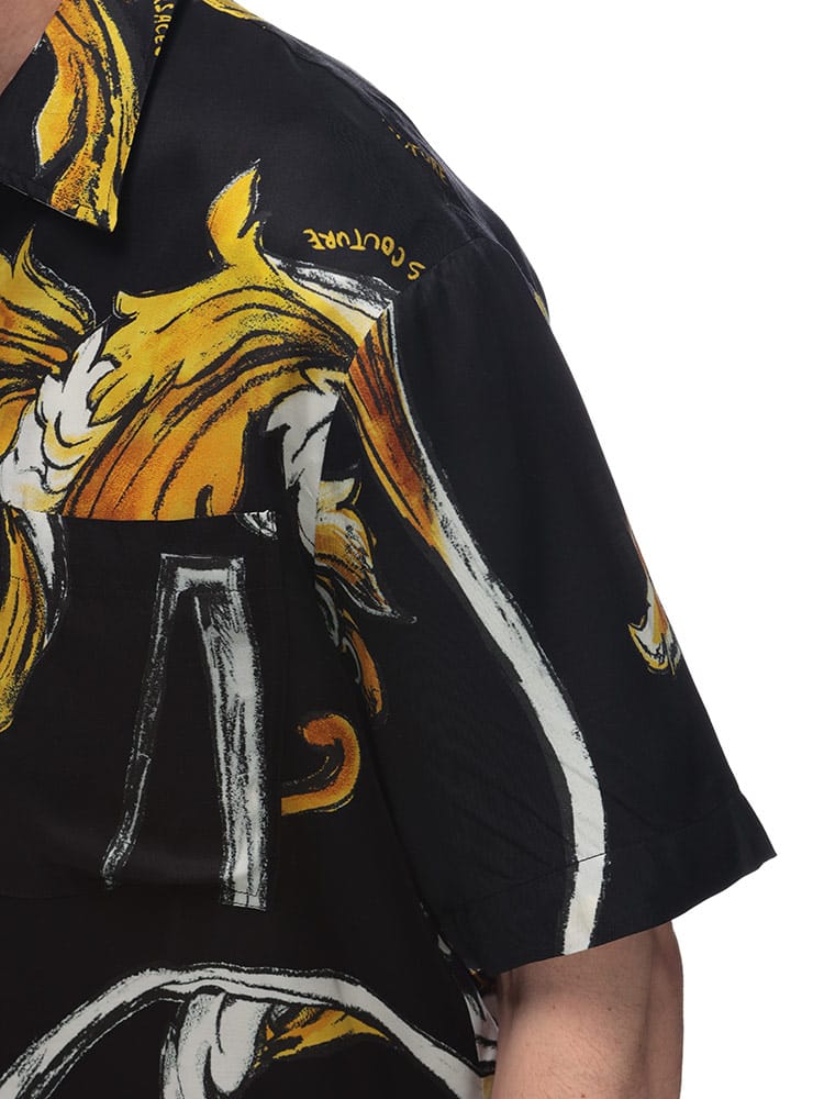 半袖のレギュラー フィット ツイル シャツ。全体にあしらったアウトライン バロッコ プリントが印象的。