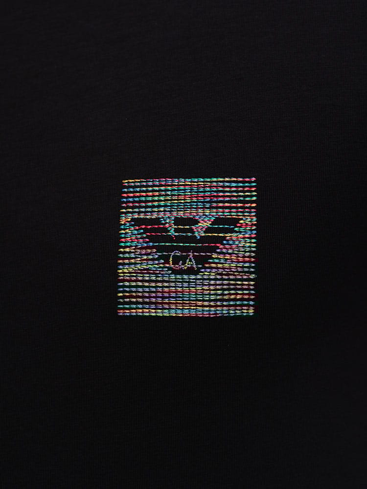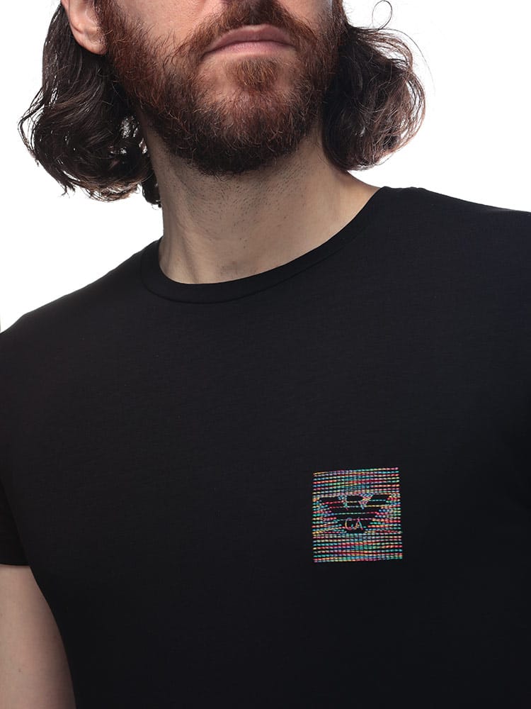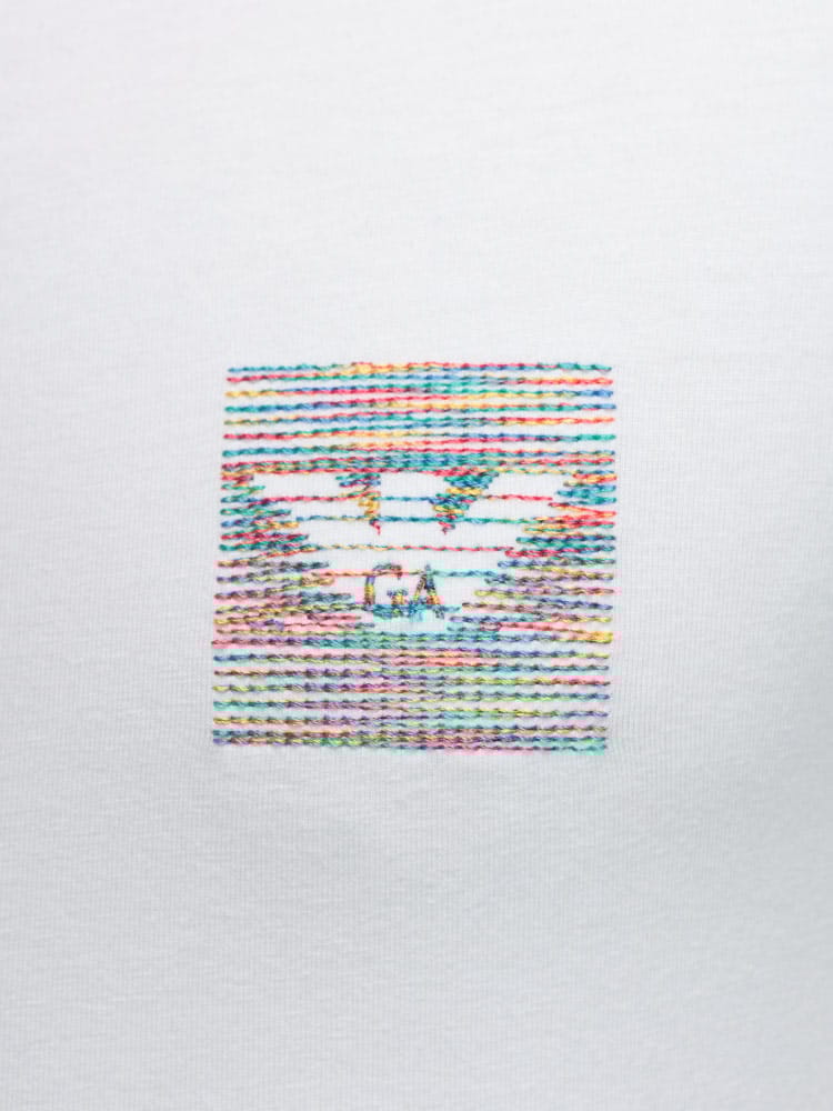 洗練されたデザインと快適な着心地を兼ね備えたTシャツです。ストレッチコットン素材を使用し、身体にフィットするスリムなシルエットを実現。胸元のマルチカラーロゴが、コーディネートのアクセントになります。クルーネックで、様々なスタイルに合わせやすく、一枚でもインナーとしても活躍する、着回し力の高いアイテムです。