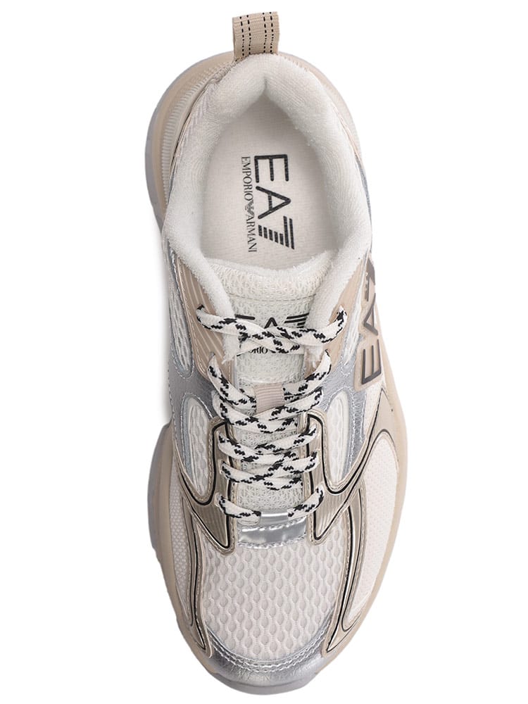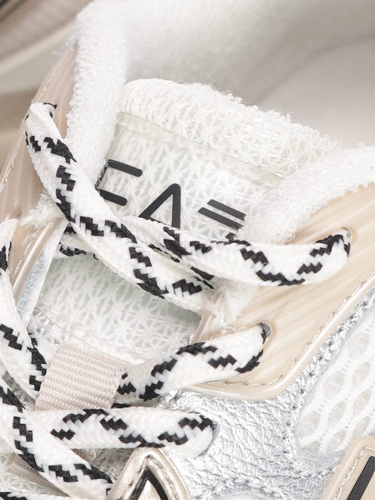 EA7ロゴメッシュアッパースニーカーは、スポーティかつスタイリッシュなデザインが魅力の一足です。通気性の良いメッシュ素材のアッパーと、存在感のあるロゴが、足元を軽快かつスタイリッシュに演出します。プレデタースニーカーと呼ばれる、力強く独特なフォルムは、コーディネートのアクセントとしても最適です。軽量でクッション性にも優れているため、タウンユースはもちろん、アクティブなシーンでも快適な履き心地を提供します。