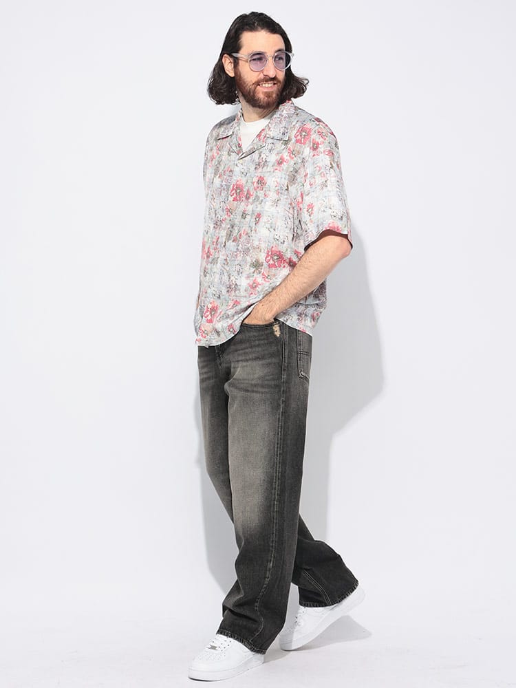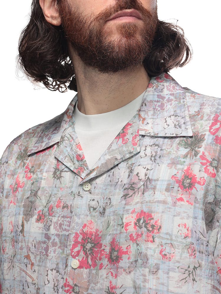 フラワー柄のオールオーバープリントが印象的な半袖シャツ「S-LEYS」。生地にはアセテートツイル地を採用し、ライトウェイトでなめらかなタッチに仕上げました、顔まわりに抜け感をもたらす開襟のデザインも◎。ゆったり感のあるレギュラーフィットで、羽織りとしてのスタイリングも好バランスです。