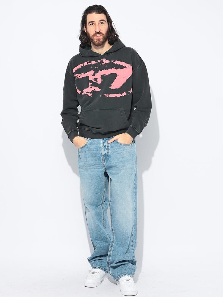 ヴィンテージライクな風合いが魅力、DIESELのプルオーバーパーカー。DIESELのウォッシュオバールD プルオーバー パーカーは、こなれ感のあるウォッシュ加工と、フロントに大胆に配されたオバールDロゴが特徴的なアイテムです。上質なコットン100%の素材を使用し、柔らかく快適な着心地を実現。フード付きのデザインは、カジュアルながらもスタイリッシュな印象を与え、様々なコーディネートにマッチします。デニムやチノパンと合わせた定番のカジュアルスタイルはもちろん、ジャケットのインナーとしてレイヤードスタイルを楽しむのもおすすめです。DIESELならではの遊び心と、ヴィンテージライクな風合いが魅力のプルオーバーパーカーは、ワードローブに欠かせない一着となるでしょう。