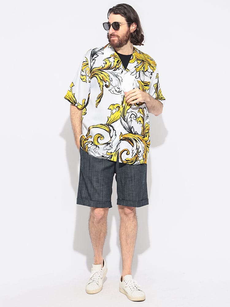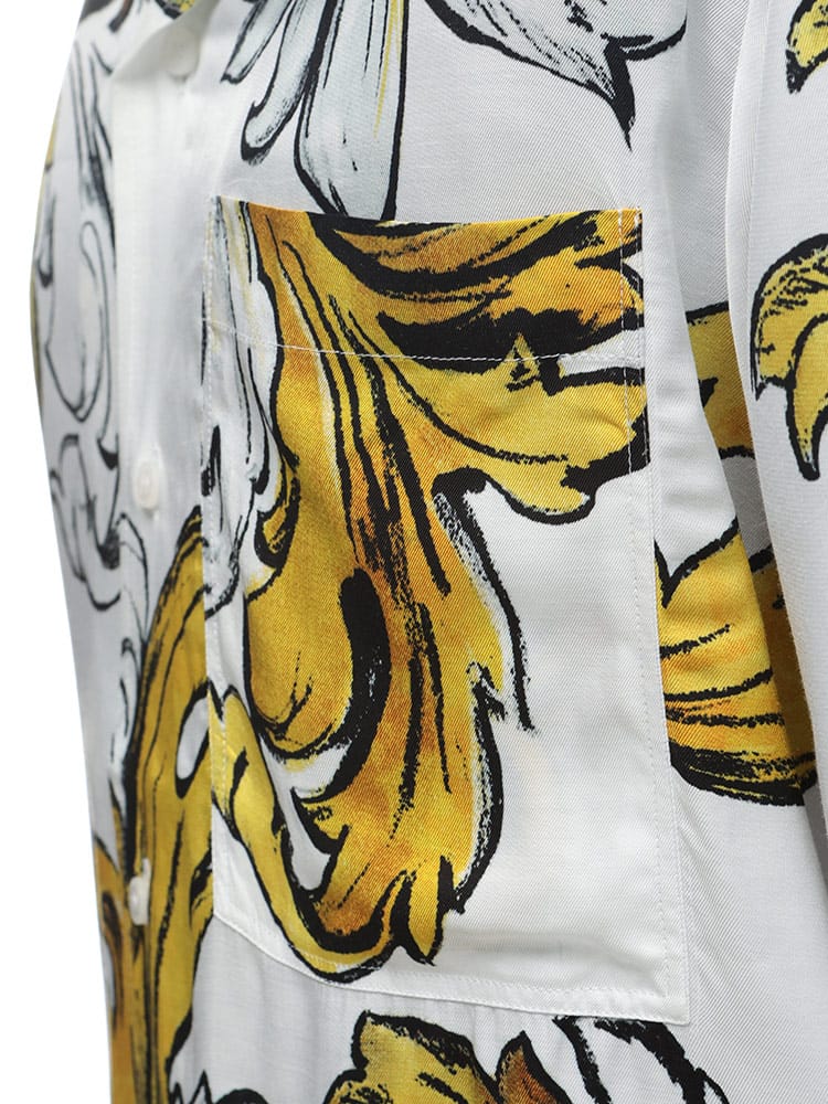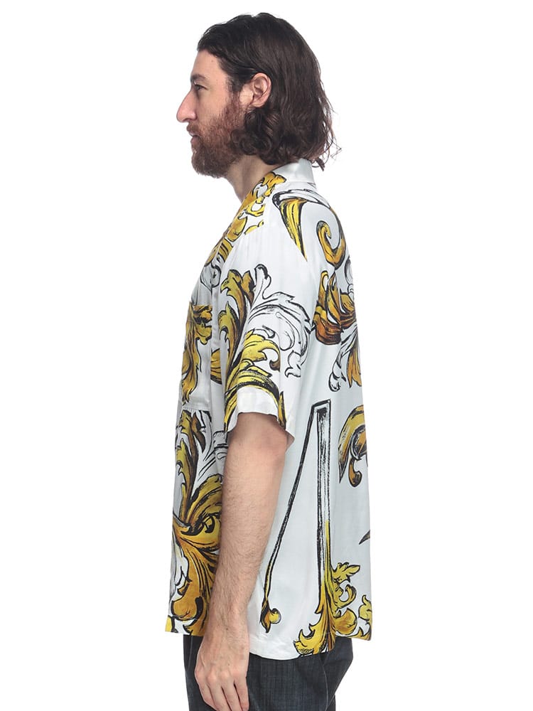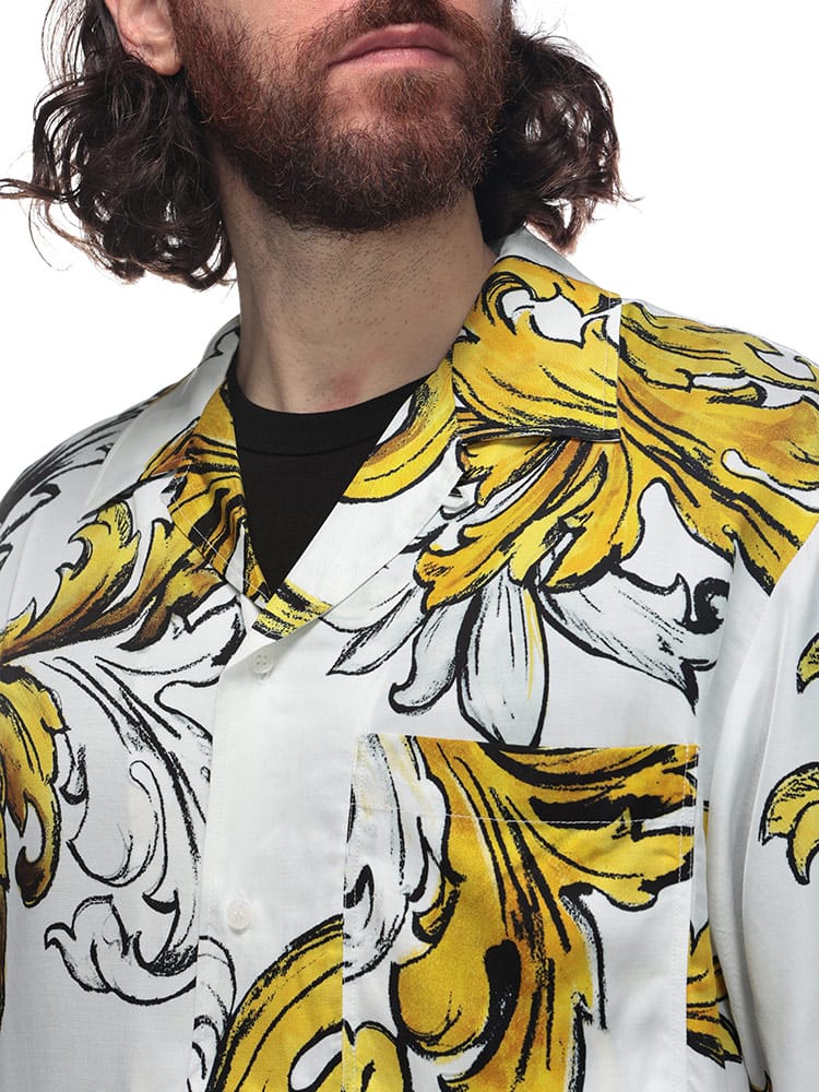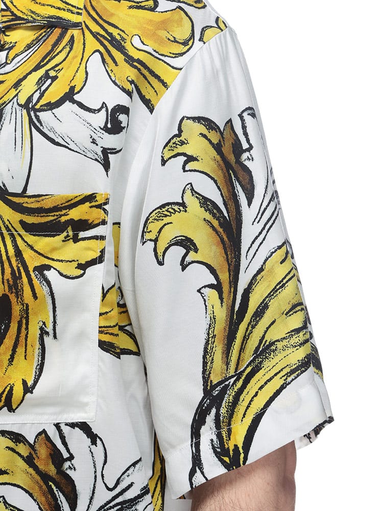 半袖のレギュラー フィット ツイル シャツ。全体にあしらったアウトライン バロッコ プリントが印象的。