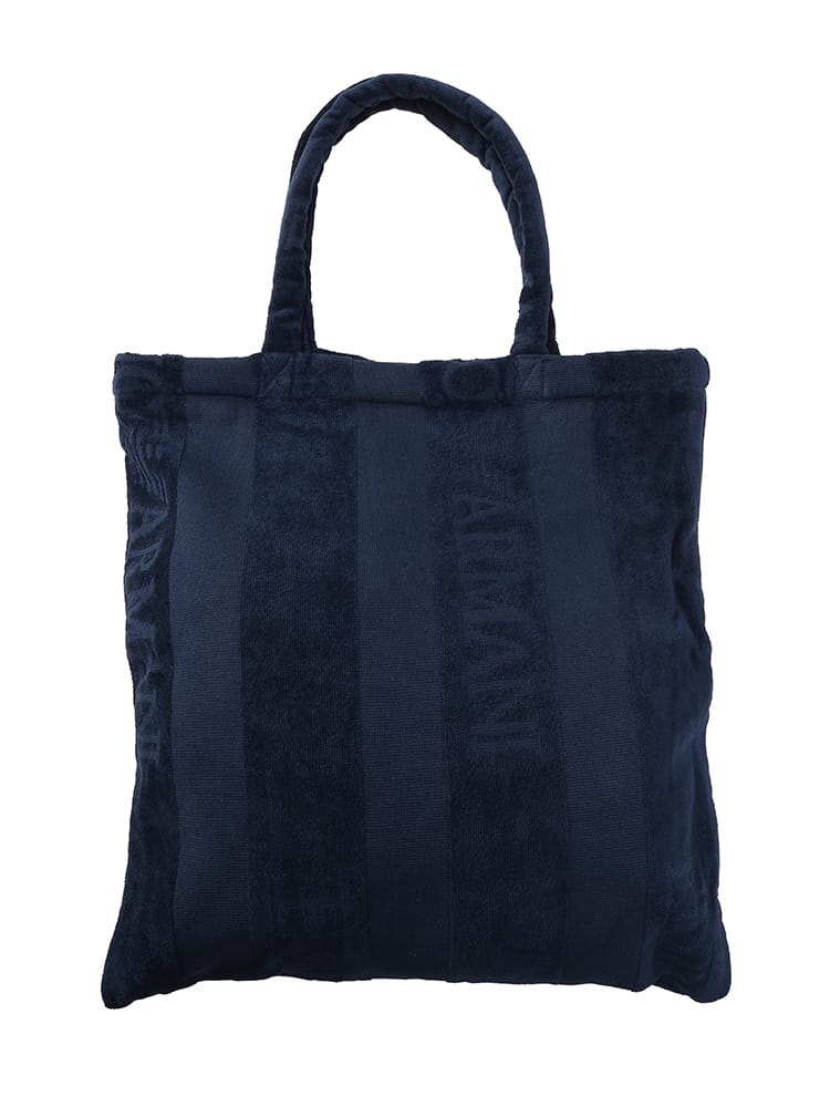 ロゴ ストライプ トートバッグは、ブランドロゴとストライプ柄が都会的な印象を与えるアイテムです。ネイビーカラーを基調とした洗練されたデザインは、カジュアルながらも上品さを忘れません。大容量で普段使いはもちろん、ちょっとした旅行にも最適。肩掛けも手持ちもしやすいデザインで、大人の男性の日常をスタイリッシュに彩ります。