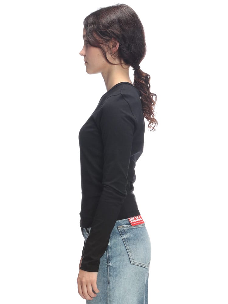 シルバーのオーバルDロゴがアイコニックな長袖Tシャツ「T-UNCUTIE-LONG-LS-OD」。生地にはほどよいストレッチと軽やかさのあるコットン製カットソー地を採用しました。すっきりと着用できるスリムフィットのデザイン。インナーにしてももたつきにくく、ジャケットやカーディガンなどとの組み合わせもストレスなく楽しめます。