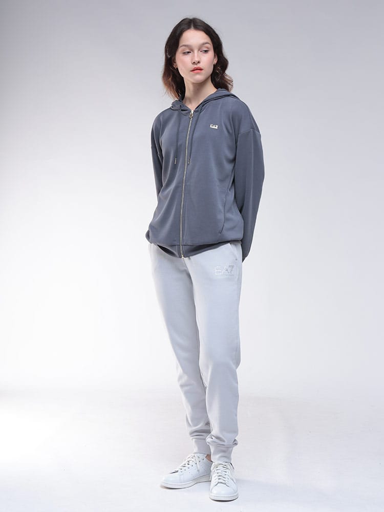 スポーツシーンにもリラックスタイムにもぴったりのジョガーパンツが登場。柔らかなオーガニックコットン混紡素材が、抜群の履き心地を叶えます。このパンツの主役は、鮮やかなラインストーンで彩られたEA7ロゴ!きらめくロゴが、シンプルな中にも華やかなアクセントを添えます。伸縮性のあるウエストと両サイドポケットで機能性も抜群。同コレクションのスウェットシャツやTシャツと合わせれば、洗練されたセットアップスタイルが完成。大人の女性のデイリーカジュアルを格上げする、万能な一本です。