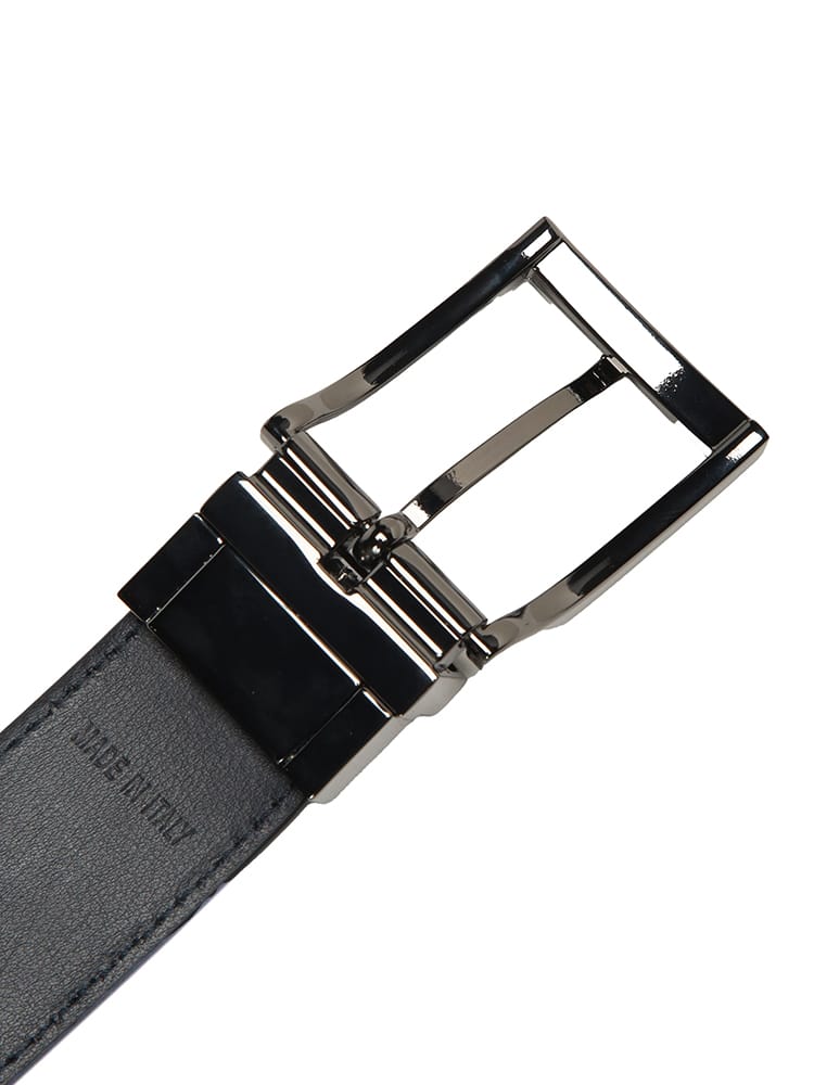 2つの表情が楽しめる、エンポリオアルマーニのリバーシブルベルト。上質なシボレザーとスムースレザー、異なる質感をシーンや気分に合わせて使い分けできます。バックルを回転させるだけで簡単に裏返すことができ、フォーマルからカジュアルまで対応。ブランドロゴを刻印したガンメタルのバックルが、さりげなく高級感を演出します。幅広いスタイルにマッチする、大人のためのマストハブアイテムです。