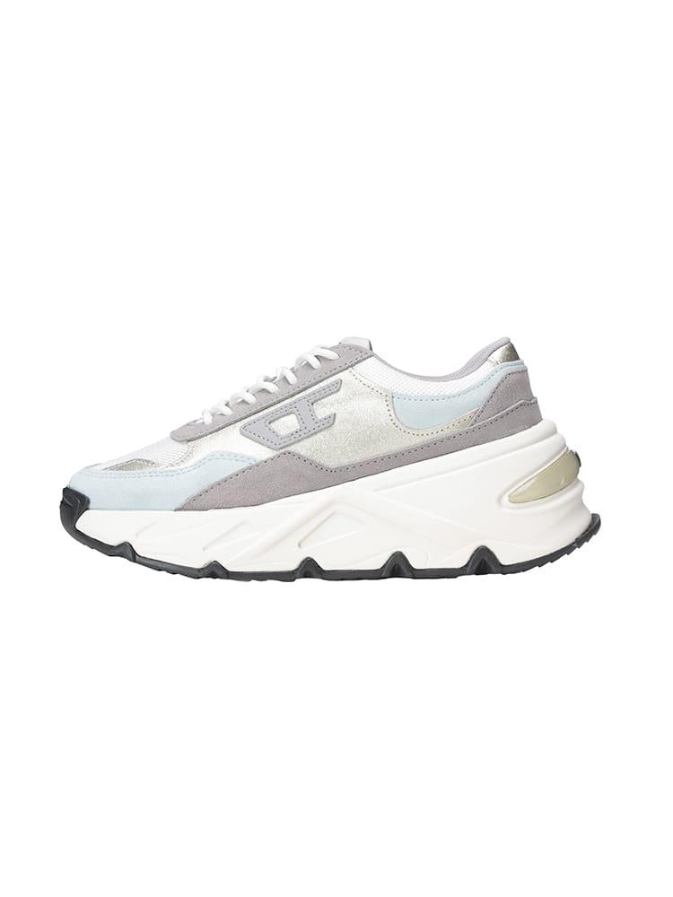 スエード メッシュ ロゴ スニーカー SAVANNAHは、異素材の組み合わせが魅力のスタイリッシュな一足です。上質なスエードと通気性の良いメッシュ素材が、快適な履き心地とモダンなルックスを両立。厚底デザインがトレンド感を演出しつつ、さりげないロゴがブランドらしさをアピールします。