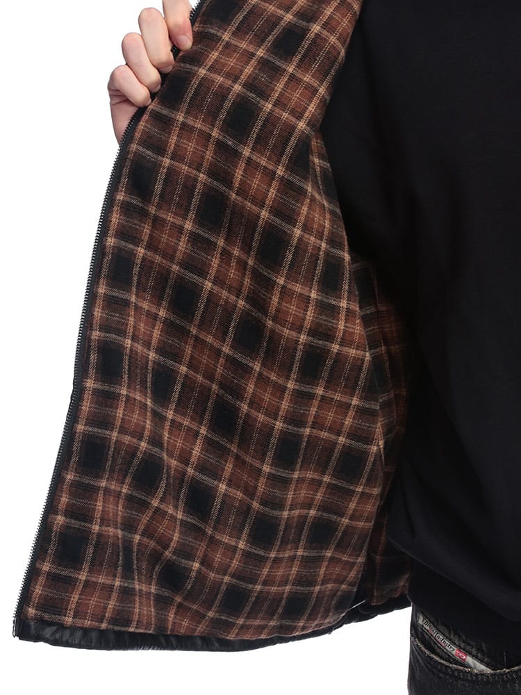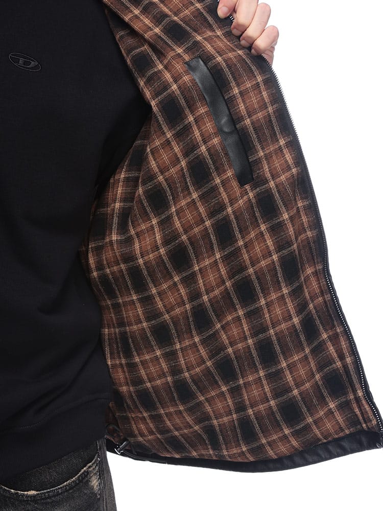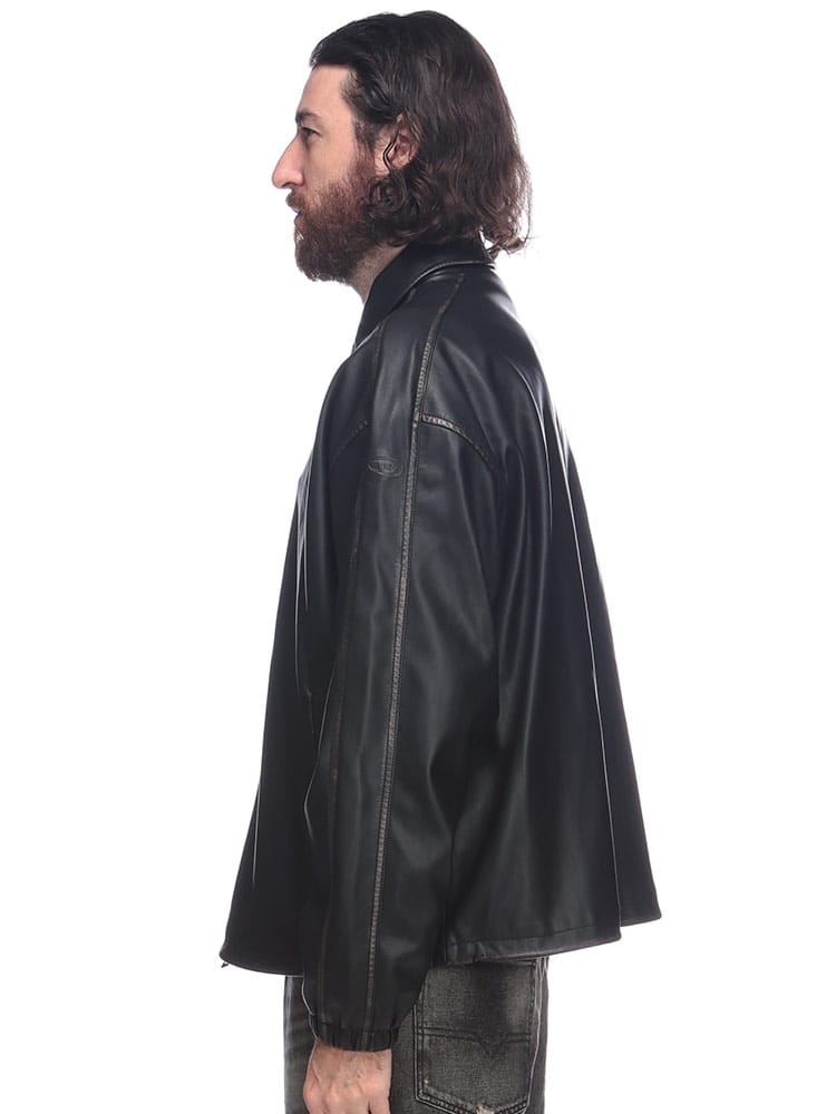 男の品格と遊び心を両立させる、ディーゼルのフルジップジャケット。マットな光沢を放つ合成皮革が、無骨ながらも洗練された雰囲気を醸し出します。裏地の切り替えデザインがさりげない個性を演出し、アウターを脱いだ後も抜かりないスタイルに。ライダース調のディテールで、いつもの着こなしをワンランク上に格上げ。秋冬のタフな相棒になる一着です。