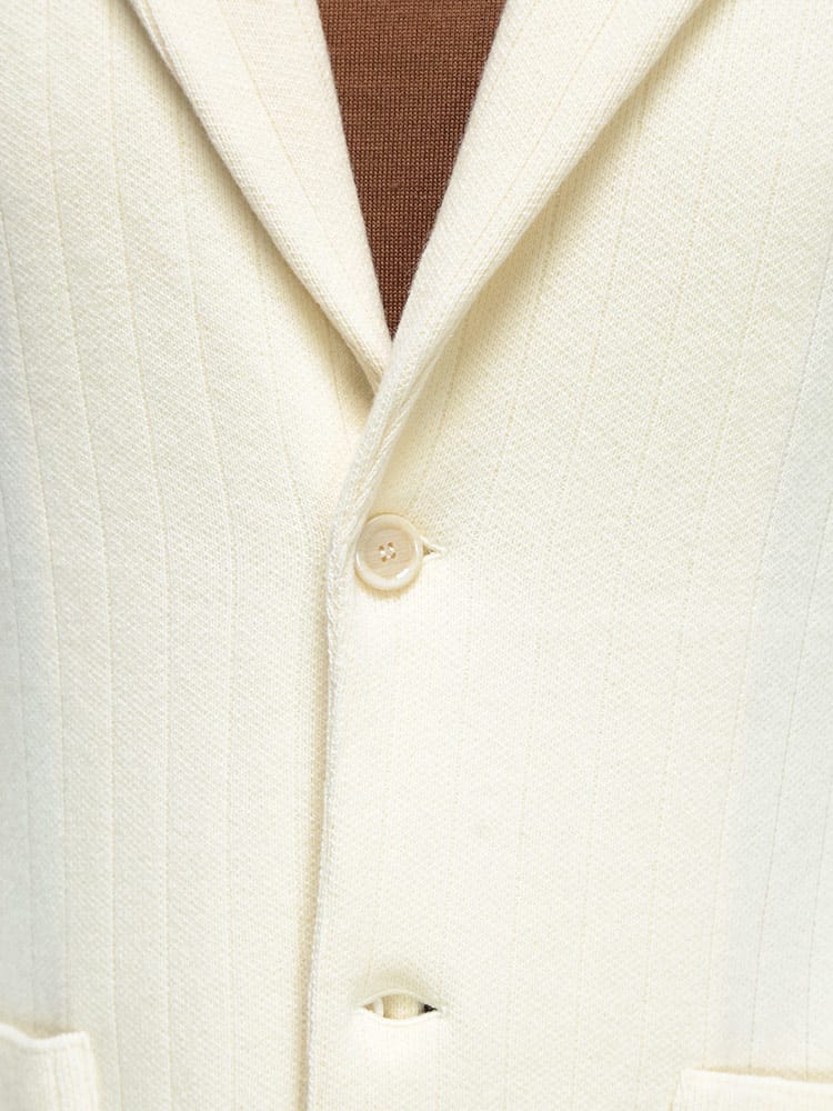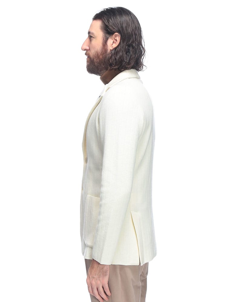 軽やかで柔らかな着心地が魅力の、LARDINIのニットジャケット。上質なウールカシミヤ素材を使用しており、保温性も抜群です。上品なストライプ柄が洗練された印象を与え、Tシャツやニットの上に羽織るだけで、普段のコーディネートをぐっとクラスアップしてくれます。ON/OFF問わず活躍する、秋冬のワードローブに欠かせない一着です。