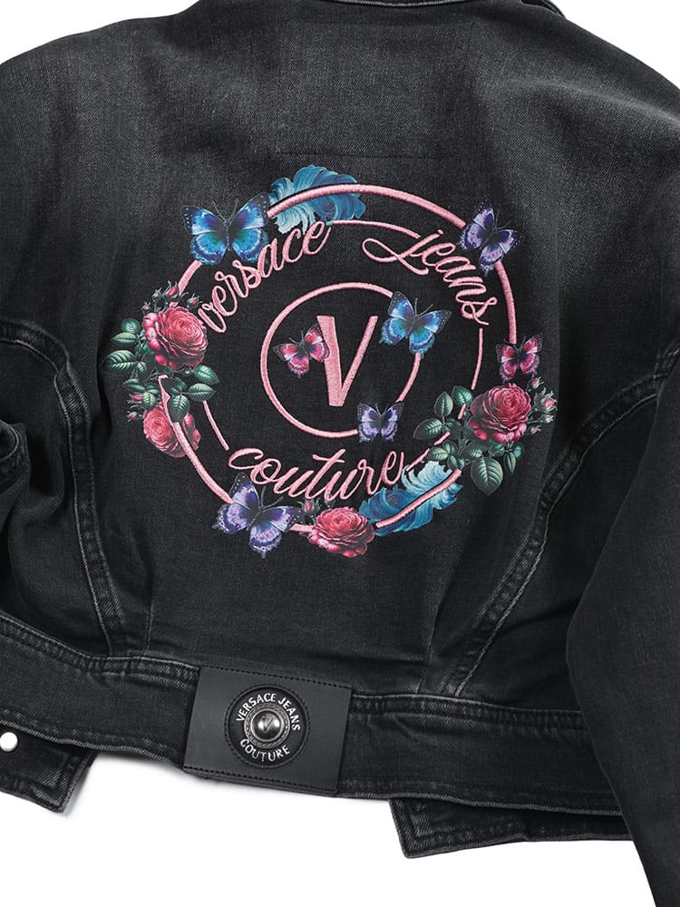 華やかなフローラルプリントのデニムジャケットです。背中にあしらわれた「レターV」のエンブレム刺繍が目を惹くデザイン。ストレッチ素材を使用しており、着心地も快適です。ショート丈でスタイルアップも叶う、個性的ながらも洗練されたレディースアイテムです。