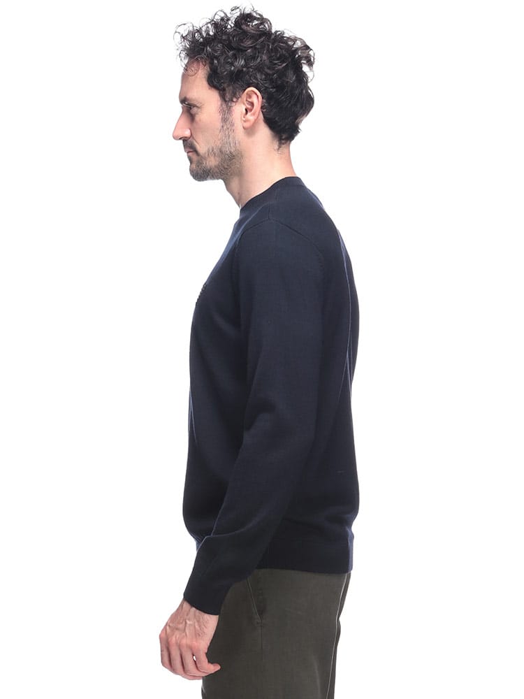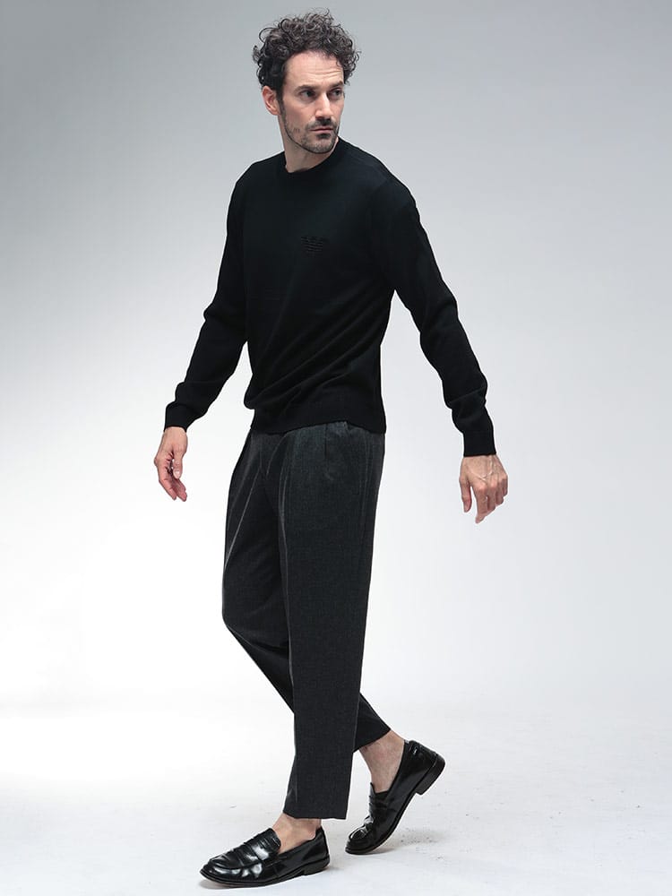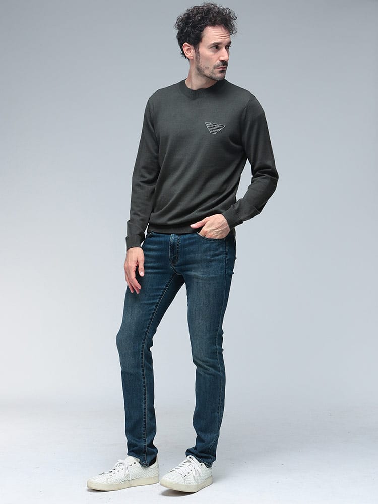 秋冬の着こなしに品格を添えるクルーネックニット。上質で柔らかなウールを100%使用しており、保温性も高く、快適な着心地が魅力です。左胸には、ブランドを象徴するイーグルパッチがさりげなくあしらわれ、洗練された大人の雰囲気を演出。シンプルながらも存在感があり、一枚で主役になるのはもちろん、シャツやアウターとのレイヤードも楽しめる、汎用性の高いアイテムです。