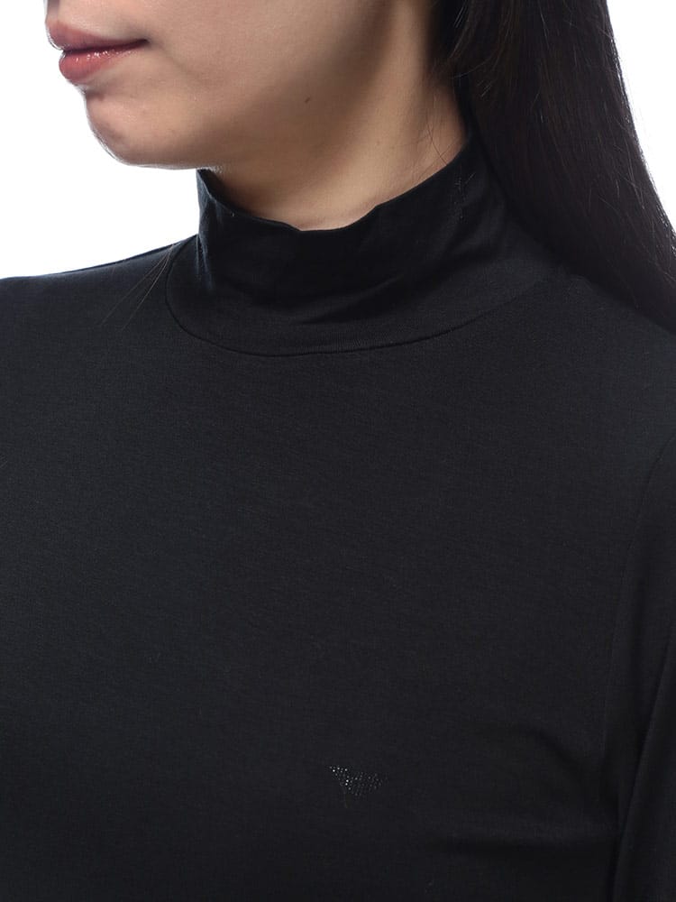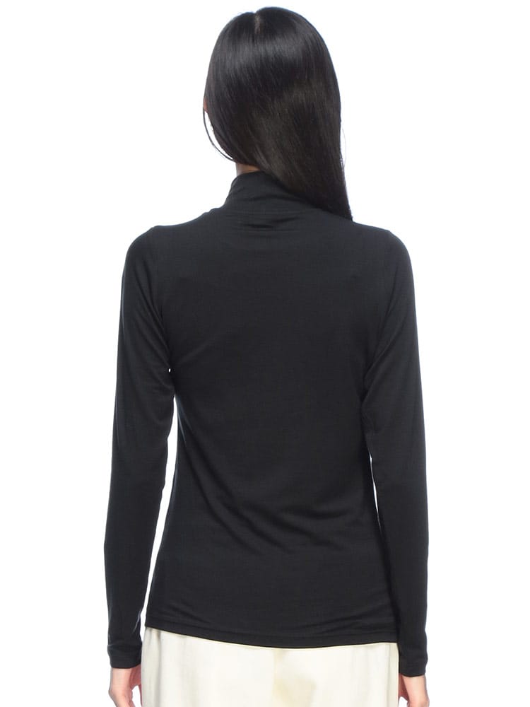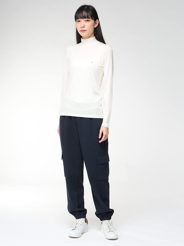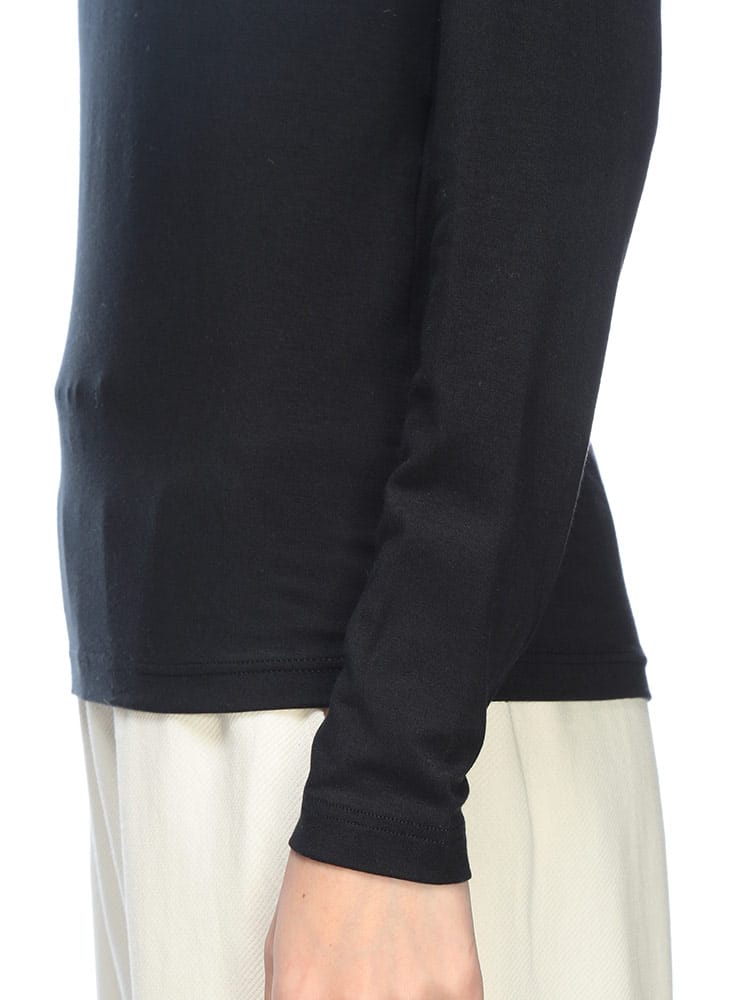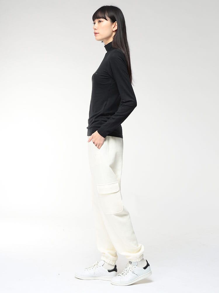 胸元にワンポイントのロゴを配したミニマルで洗練されたデザインです。肌触りの良い上質な素材を使用しており、一枚着としてはもちろん、ジャケットやアウターのインナーとしても最適です。程よい高さのモックネックが、モダンで都会的な印象を演出します。