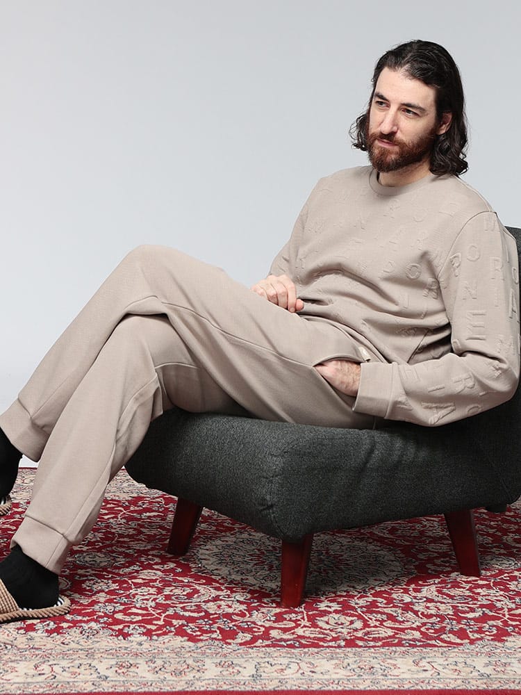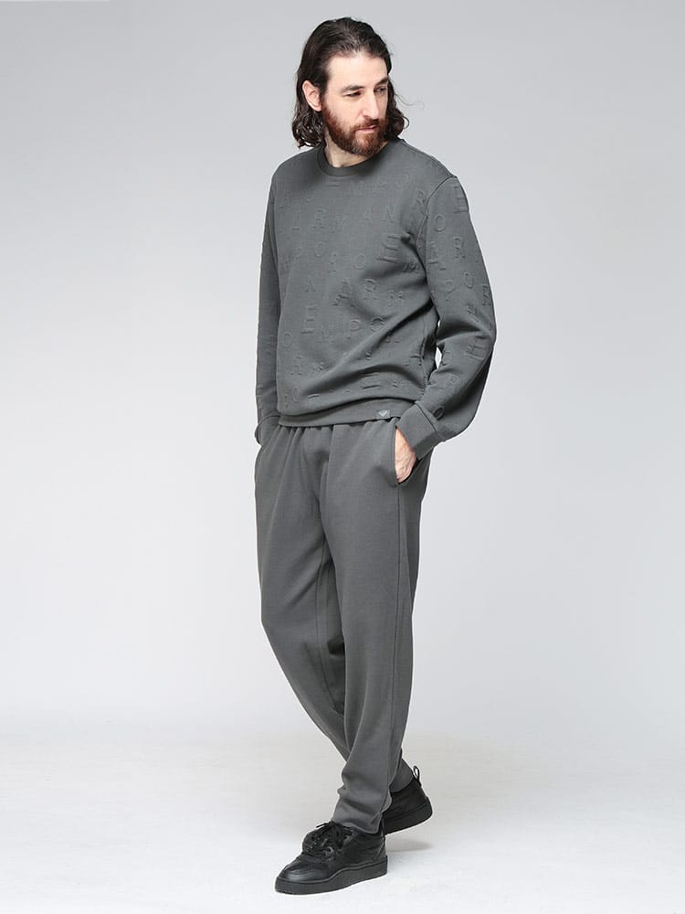 総柄ロゴが目を引くラウンジウェアセットアップです。ブランドロゴを大胆に配したトレーナーとパンツが、リラックスタイムをスタイリッシュに演出。快適な着心地で、ルームウェアとしてはもちろん、ちょっとした外出にも対応する洗練されたデザインが魅力。ラグジュアリーなリラックススタイルを楽しめます。
