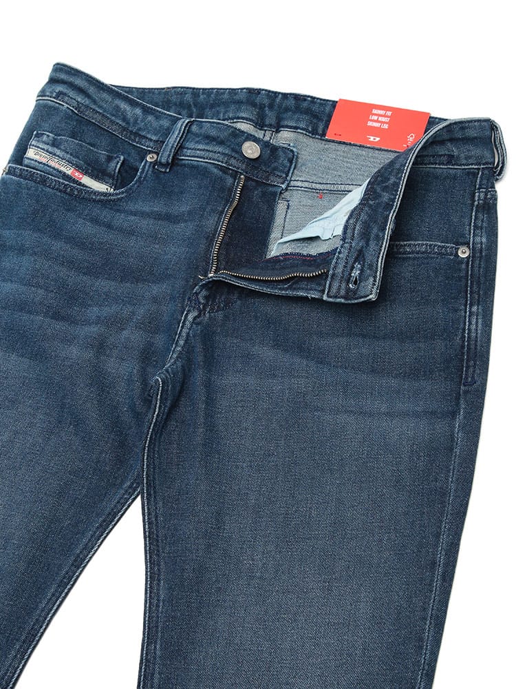 DIESELのデニムラインでも絶大な人気を誇る、極細シルエットの「SLEENKER」。スキニーパンツの常識を覆す高いストレッチ性を備え、脚のラインに吸い付くような美しいフォルムと、一日中履いても疲れない快適な着心地を両立しています。洗練されたジップフライ仕様と、ディーゼルらしい細部へのこだわりが凝縮されたデザインは、モードからカジュアルまであらゆるスタイルをシャープに引き締める至極の一本です。