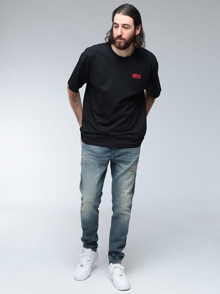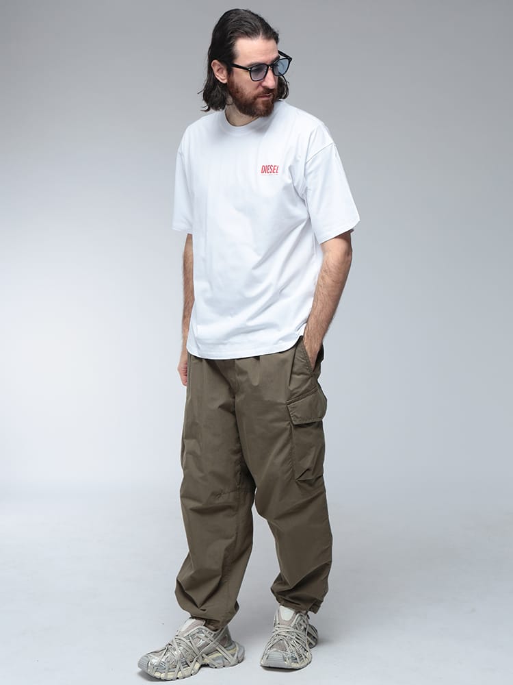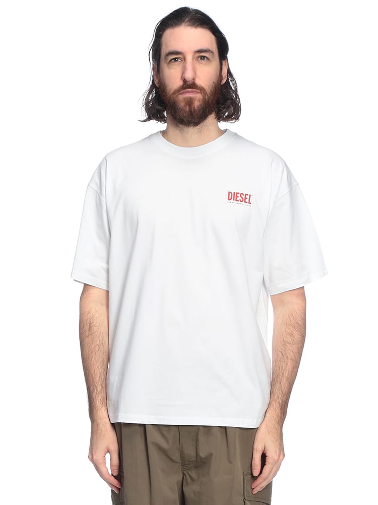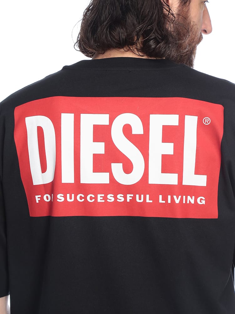 DIESELの象徴的なBOXロゴを背面に大胆に配置した、インパクト溢れる半袖Tシャツ。フロントはミニマルに仕上げることで、バックスタイルのグラフィックをより一層際立たせています。さらりとした質感の高品質なコットン生地は通気性が良く、夏場でもストレスフリーな着心地を実現。ストリートシーンに映えるタフな表情と、現代的なシルエットが融合した、後ろ姿でブランドの個性を語る主役級のデイリーウェアです。