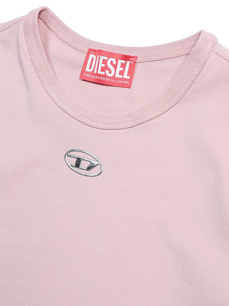 「DIESEL」のニュースタンダードとして君臨する「オーバルD」シリーズから、トレンドのヘルシーな肌見せを叶えるミニTシャツが登場。最大のポイントは、胸元に大胆に施された「D」ロゴのカットアウト。立体的なエンブレムが、シンプルなTシャツに圧倒的な存在感とモードなニュアンスをプラスします。女性らしさを引き立てるタイトシルエット コットンにエラスタンを混紡したストレッチ素材を採用し、身体のラインに美しくフィットするタイトなサイズ感を実現。コンパクトな着丈は、ハイウエストデニムやワイドパンツと合わせることで、抜群のスタイルアップ効果を発揮します。Y2Kムード漂う、アクティブでエッジィな大人の夏スタイルに欠かせない一着です