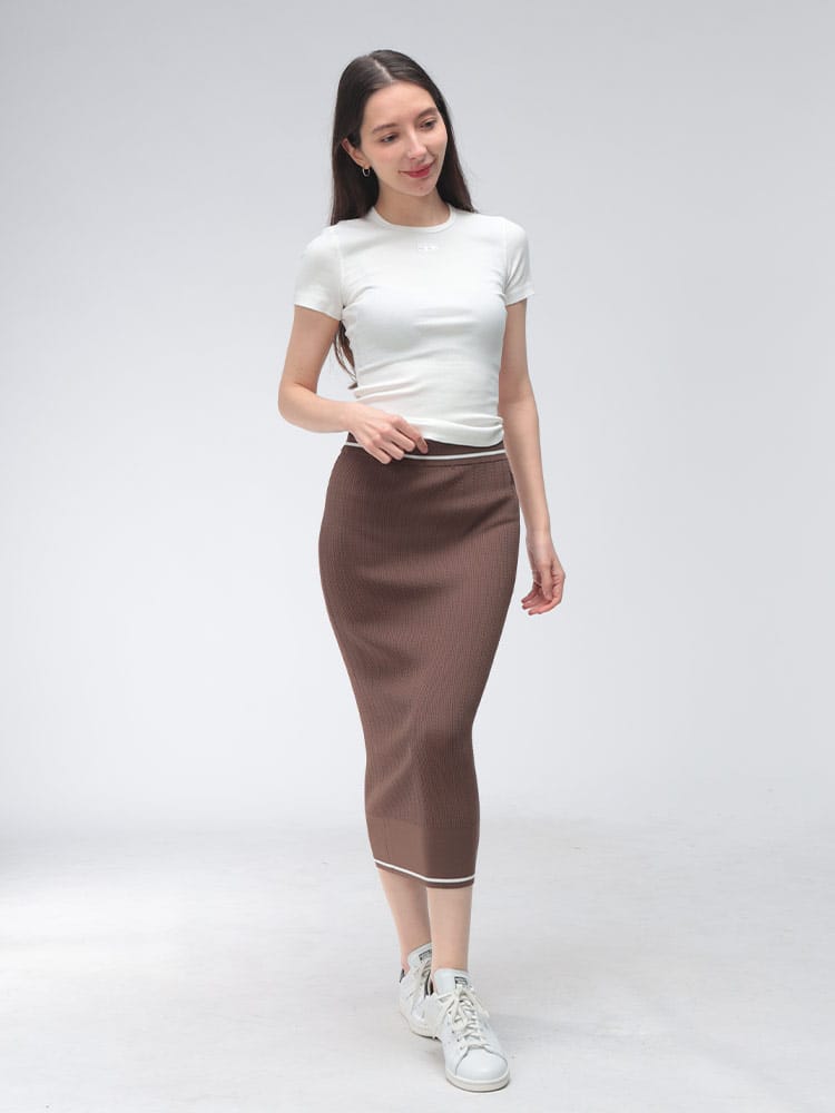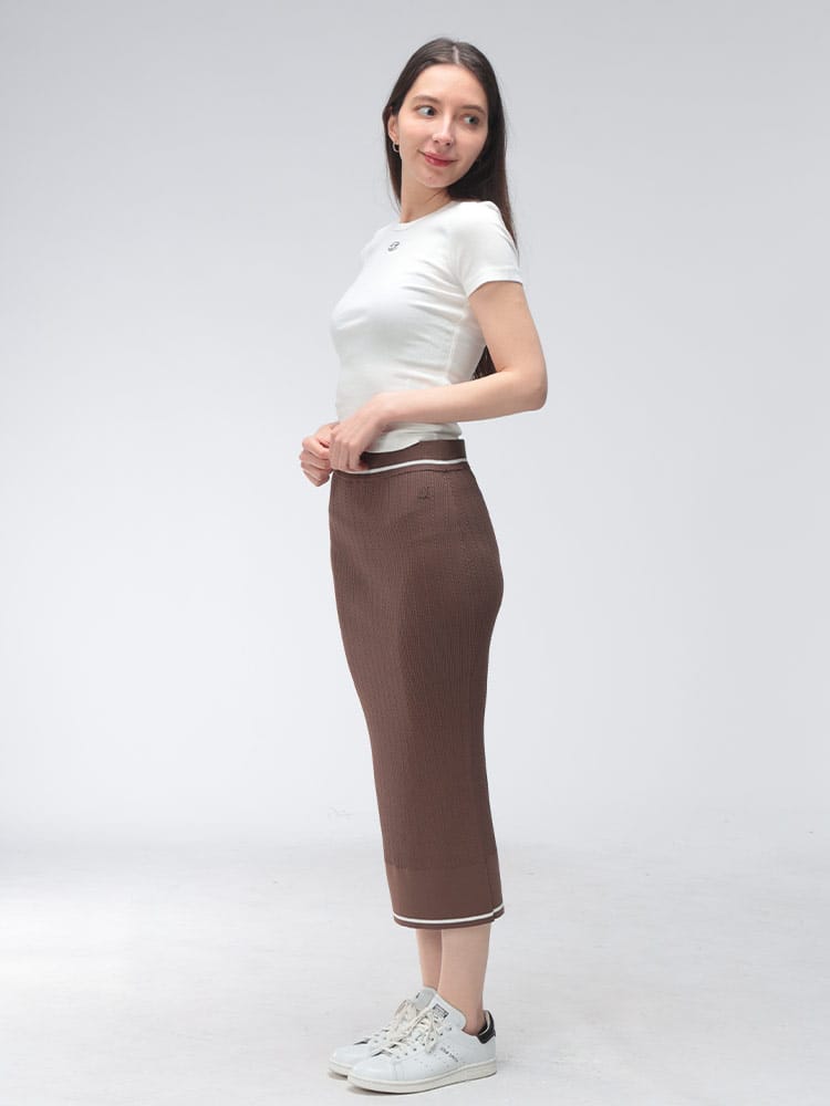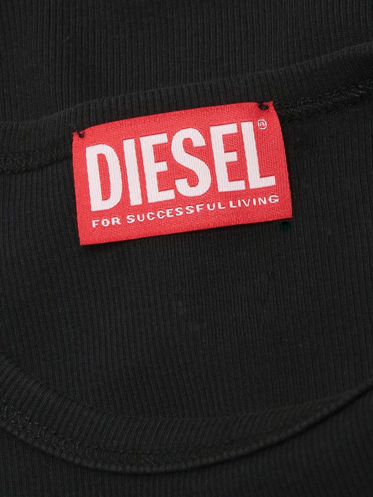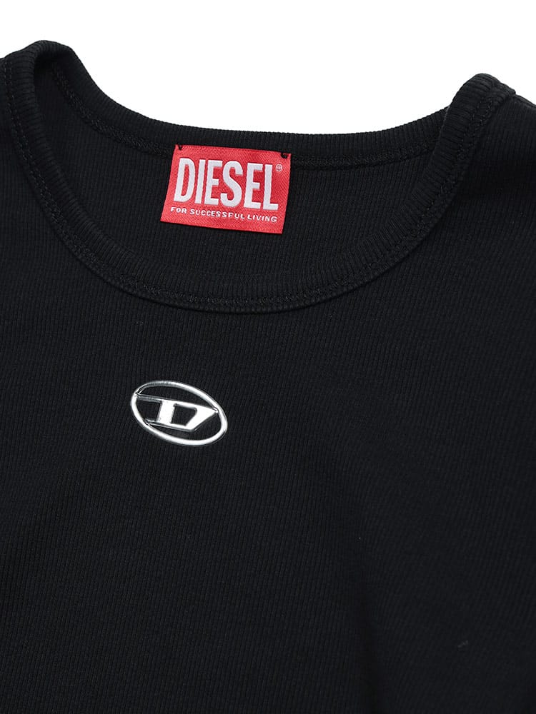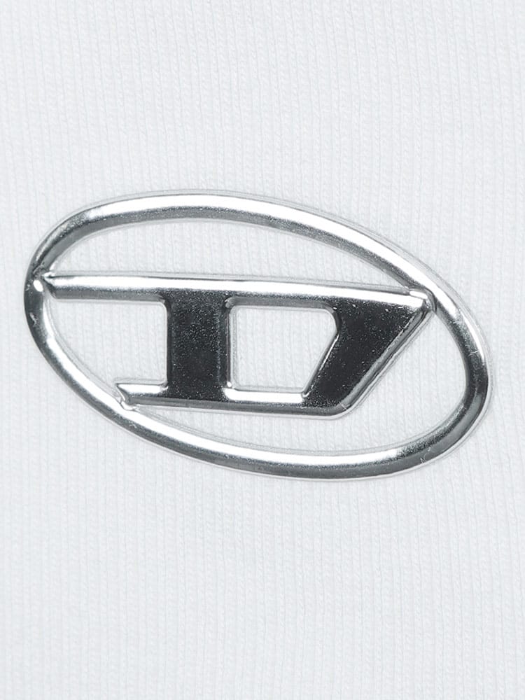 「DIESEL」の美学が詰まった、今の気分にぴったりの「オーバルD」リブTシャツ。表情豊かなリブ編み素材を採用することで、カジュアルなTシャツをぐっと都会的で洗練された印象へと昇華させました。最大の特徴は、胸元に配されたアイコニックなオーバルDのメタルプレート。リブの縦ラインと相まって、ミニマルながらも力強い個性を放ちます。計算されたタイトフィット エラスタンを混紡した高いストレッチ性が、ボディラインを美しく補整し、女性らしいシルエットを強調。コンパクトな着丈は、ボリュームのあるボトムスとも相性抜群です。一枚での着用はもちろん、ジャケットのインナーとしても映える、汎用性とトレンド感を兼ね備えた大人のためのミニTシャツです。