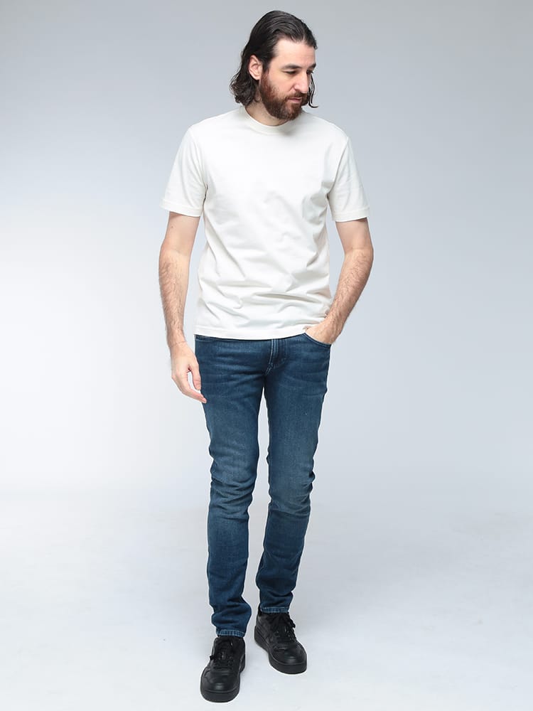 背面に配されたスクエアロゴが、モダンで建築的な美しさを放つエンポリオ・アルマーニの半袖Tシャツ。幾何学的なフレームにブランドの誇りを感じさせるロゴを閉じ込めたデザインは、洗練された都会的な印象をより一層際立たせます。選び抜かれた上質な素材による滑らかな着心地と、体のラインを美しく見せるシルエットはアルマーニならでは。後ろ姿に知的なアクセントを加え、モードな感性を纏える一ランク上の日常着です。
