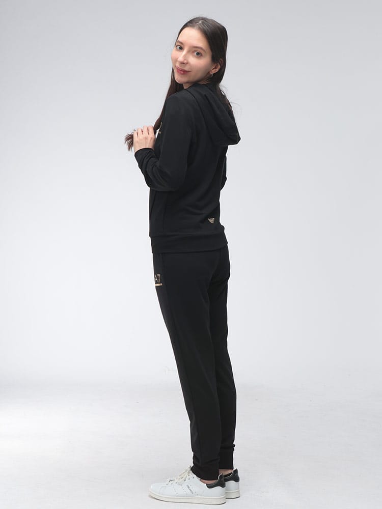 「EMPORIO ARMANI」のスポーツライン「EA7」から、大人のオフスタイルを贅沢に格上げするトラックスーツが登場。最大の魅力は、ポリエステルとビスコースを混紡したテクニカルな素材感。シルクのような滑らかな光沢と、エラスタンによる優れた伸縮性が、ルームウェアの域を超えた洗練されたシルエットを描き出します。「着る」だけで完成する機能美 胸元とパンツに配されたミニマルなワンポイントロゴが、アルマーニらしい気品をプラス。ウエストゴム仕様のパンツや利便性の高いポケット配置など、実用性も徹底されています。ジムへの行き帰りから、旅先の機内ウェア、都会的なワンマイルスタイルまで。スポーティーながらもエレガントさを失わない、現代女性のためのアクティブウェアです。