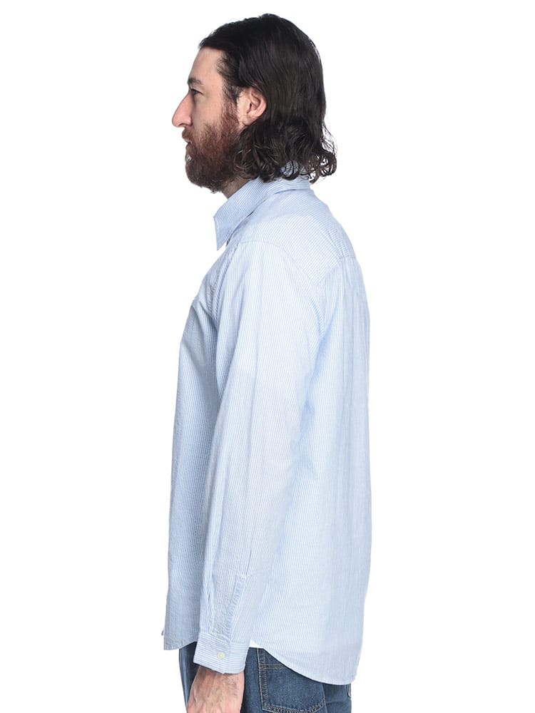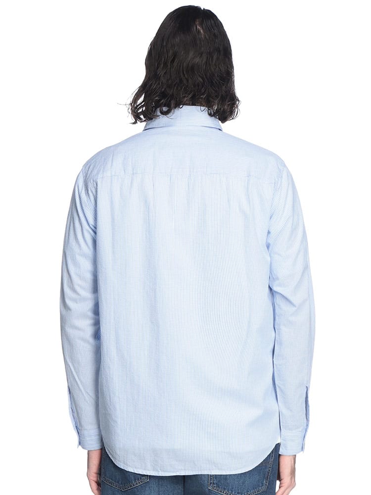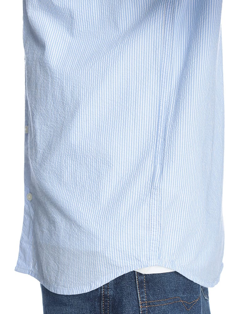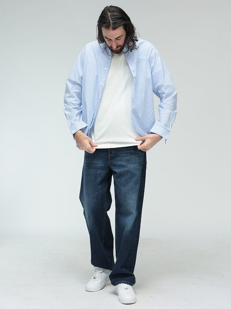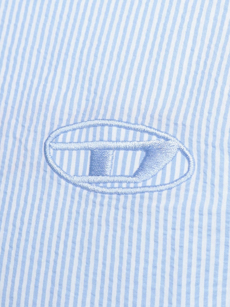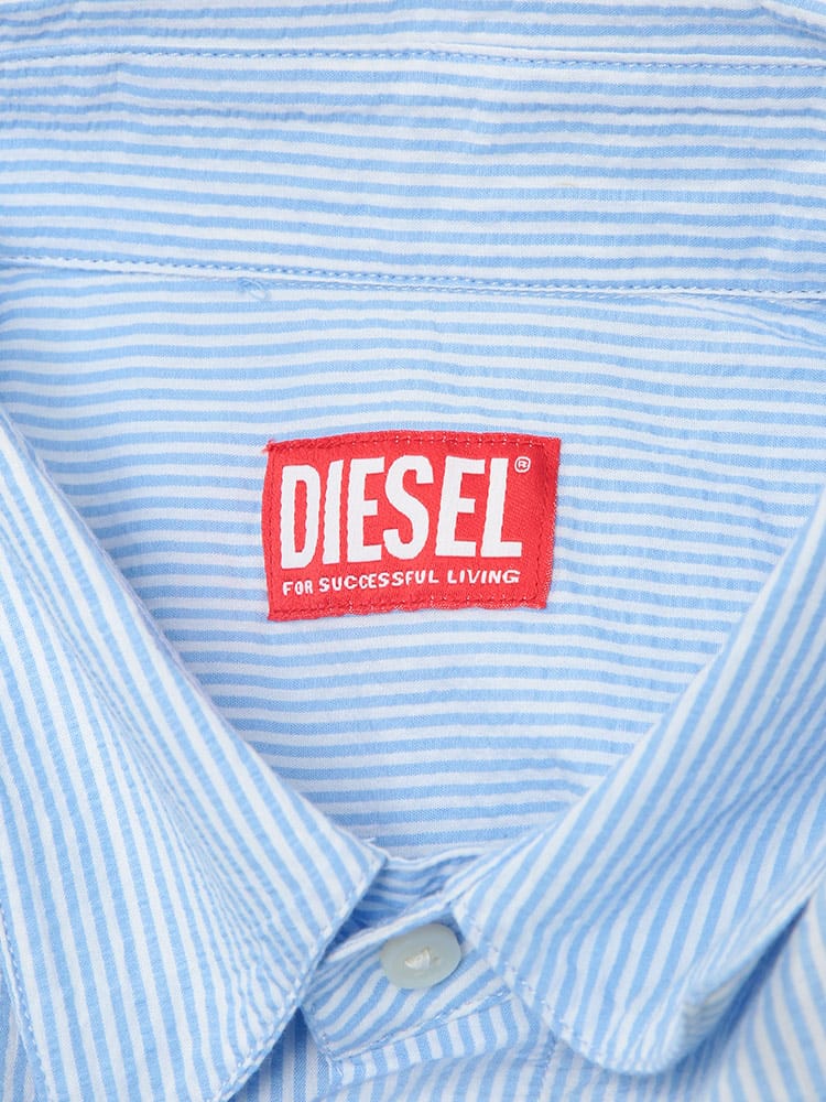 立体感が描くモダニズム。シアサッカー・ストライプシャツ。最大の魅力は、凹凸感が特徴の「シアサッカー」生地を採用している点です。肌に触れる面積が少ないため、常にさらりとしたドライな着心地をキープ。クラシックなストライプ柄に、ディーゼルらしい都会的なエッセンスを加えることで、清潔感と遊び心が共存する一着に仕上げました。素材は上質なコットン100%。ナチュラルな風合いを活かしつつ、ブランドロゴがさりげなくアイデンティティを主張します。端正なレギュラーカラーのデザインは、ボタンを留めてクリーンに着こなすのはもちろん、羽織りとしてラフに纏ってもサマになります。シアサッカー特有のシワになりにくい性質は、アクティブな大人の日常に最適。季節の変わり目を軽やかに、そしてスマートに彩るマスターピースです。
