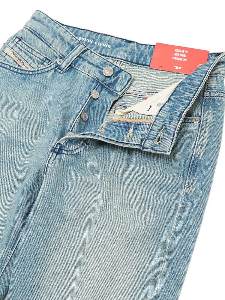 【DIESEL】1971 D-SENT ボタンフライ ストレートデニム。人気ブランド「DIESEL(ディーゼル)」より、オーセンティックな魅力が詰まったレディースジーンズ「1971 D-SENT」が登場。トレンドに左右されないストレートシルエットが、脚のラインを美しく見せてくれます。素材はこだわりの綿100%(コットン100%)を使用。履き込むほどに味わいが増す本格的なデニムの質感を楽しめます。フロントはディーゼルらしいボタンフライ仕様で、細部までヴィンテージ感を追求しました。5ポケットのクラシックなスタイルは、カジュアルからきれいめまで着回し力抜群。通年活躍する定番ボトムスとして、ギフトにも最適な一着です。