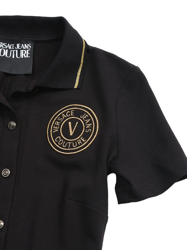 「レターVエンブレム」の刺繍が胸元に輝く、洗練されたポロワンピースです。襟や袖口にあしらわれたラインデザインが、スポーティーかつクラシックな表情を演出。ボディラインに沿うタイトなシルエットが、カジュアルなポロスタイルに女性らしい色香を添えています。一枚でさらりと着こなすだけで、春夏のデイリースタイルをモードでラグジュアリーに格上げする逸品です。