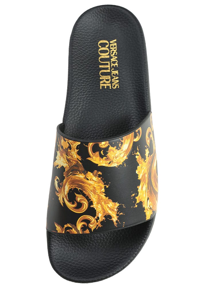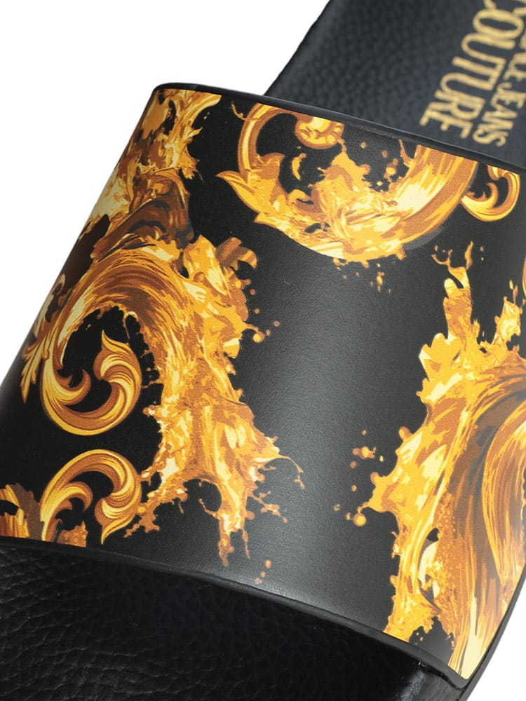華やかなプリントが施された、存在感溢れるメンズスライドサンダルです。ブランドを象徴するバロック調の紋様やロゴデザインが、リラックス感のあるシャワーサンダルをラグジュアリーな一足へと昇華させています。軽量でクッション性に優れたソールを採用しており、タウンユースからビーチ、プールサイドまで快適に。夏の足元をエッジの効いたモードなスタイルに彩る逸品です。