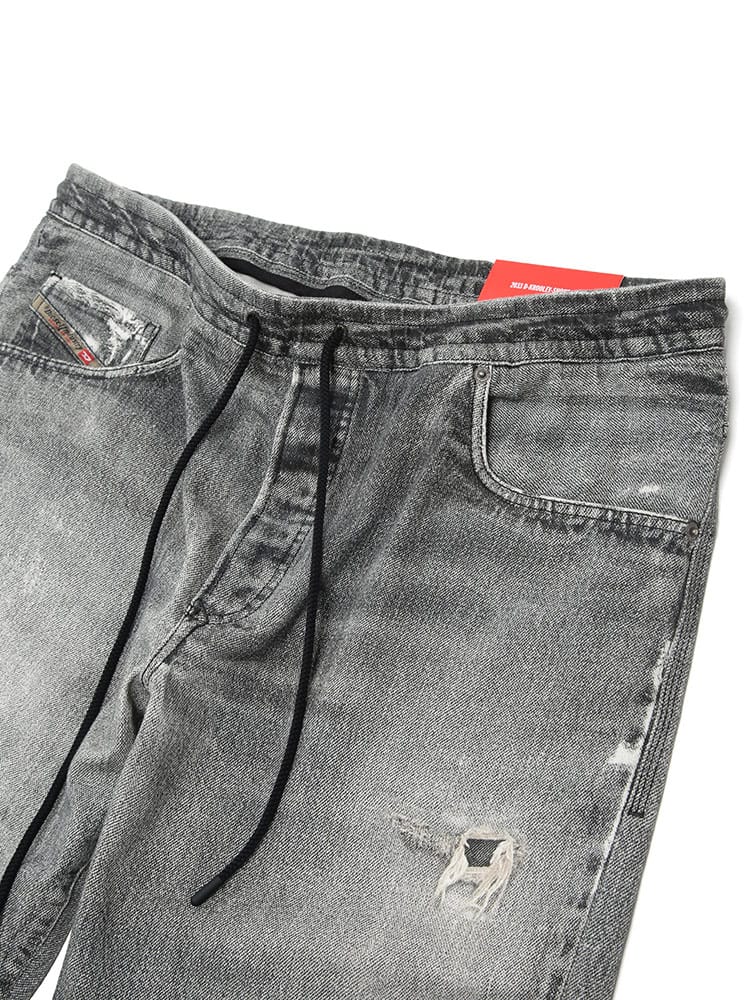 DIESEL(ディーゼル)の革新的な技術が詰まった「JOGG JEANS(ジョグジーンズ)」シリーズから、人気モデルをショーツに昇華させた「D-KROOLEY」が登場。デニムのタフなルックスとスウェットの驚異的な伸縮性を両立し、綿99%にエラスタン1%を混紡したファブリックが、アクティブな春夏シーンに最適なストレスフリーの穿き心地を約束します。ウエストにはゴムとドローコードを配し、体型に合わせた微調整が可能なイージー仕様。随所に施されたプリントデザインが、シンプルなカジュアルスタイルにエッジの効いたアクセントを添えます。機能的な5ポケットと便利なジップフライを備え、日常のワンマイルウェアから本格的なレジャーまで、大人の休日を格上げする汎用性抜群のハイブリッドショーツです。