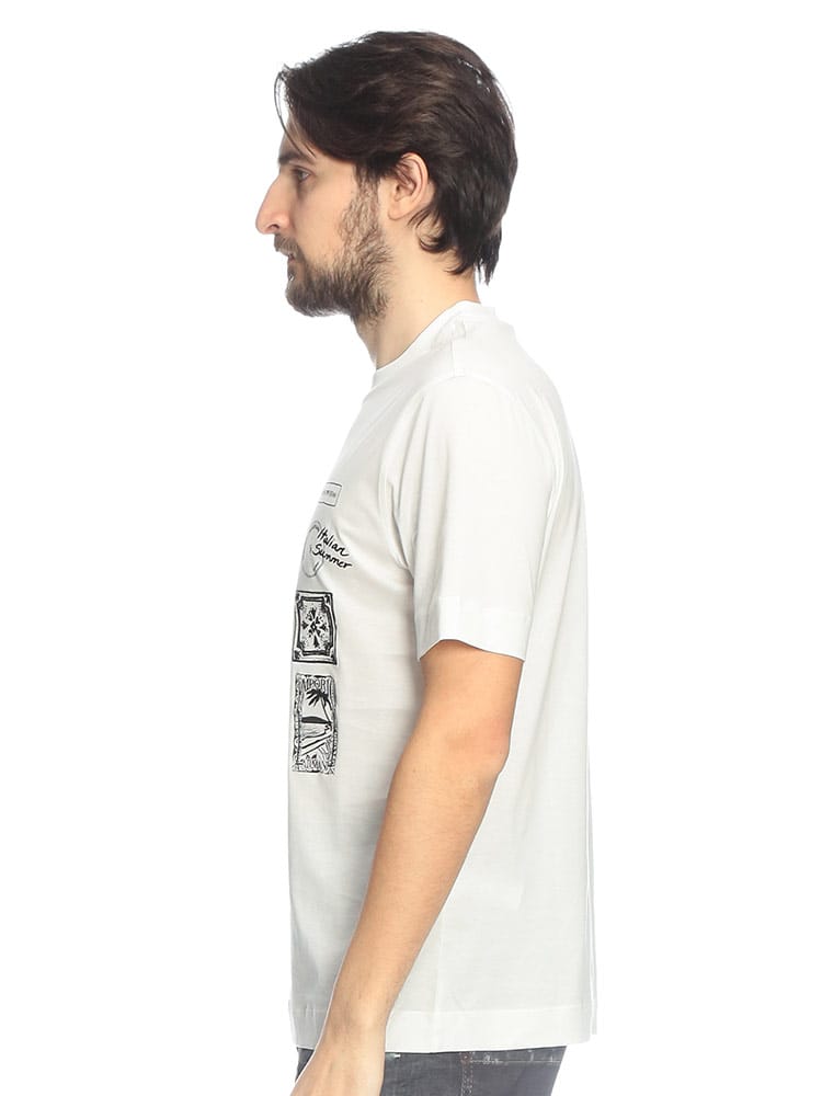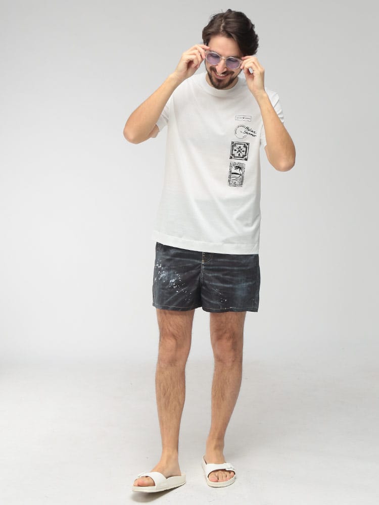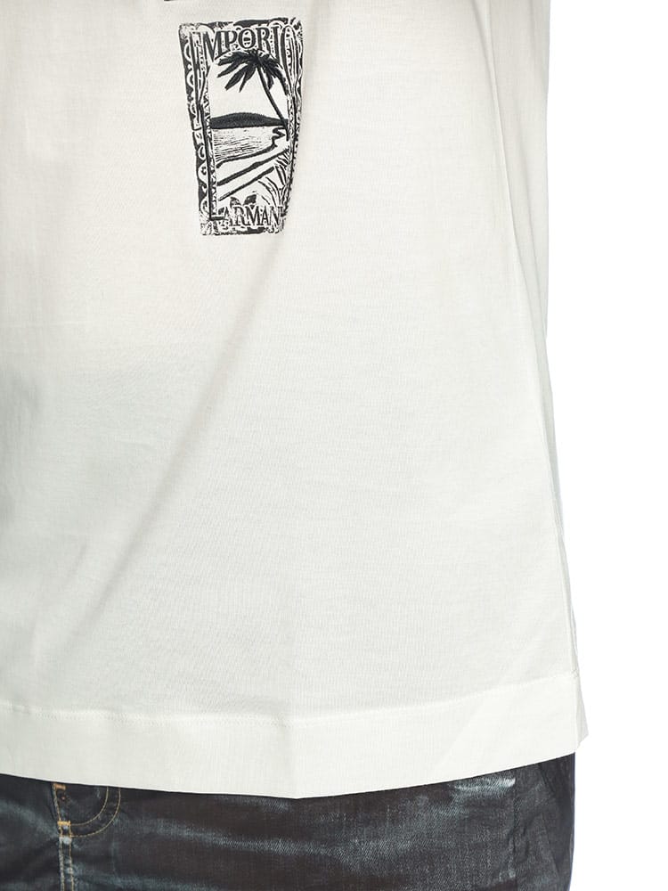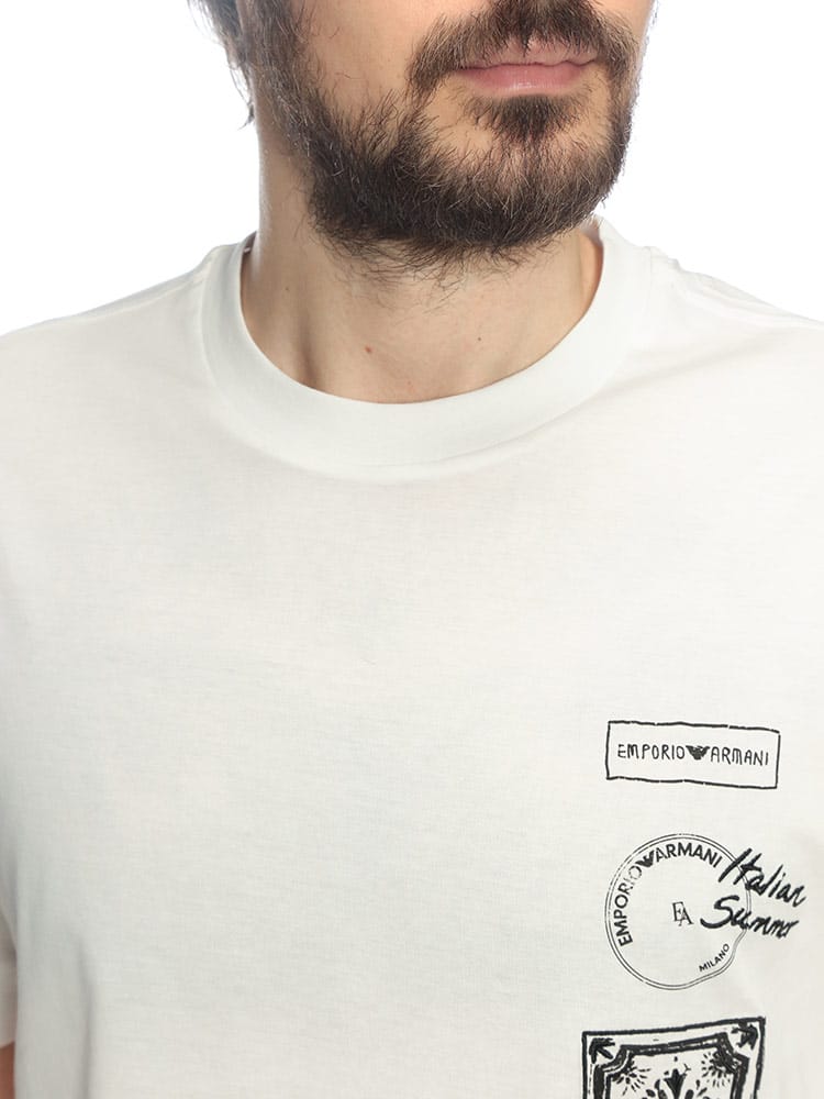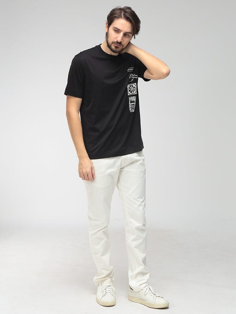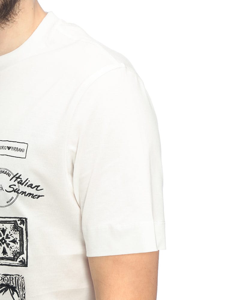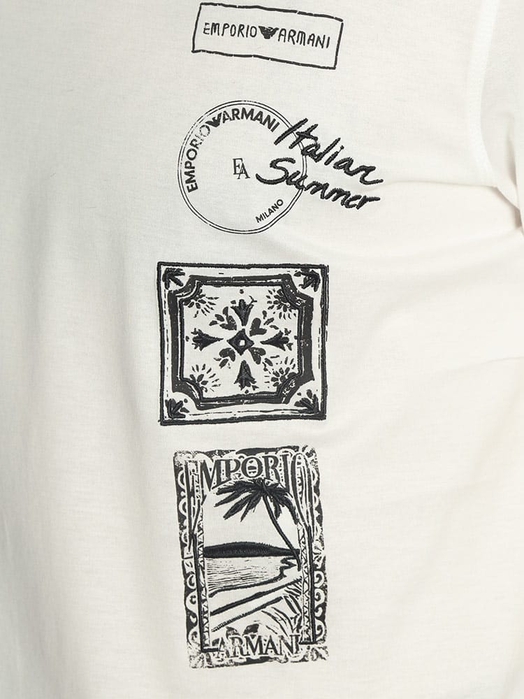 エンポリオアルマーニの独創的な感性が光る、プリントと刺繍を贅沢に組み合わせた半袖クルーネックTシャツ。立体感のある刺繍が施されたデザインは、シンプルになりがちな夏の装いに奥行きと確かな存在感を与えます。上質なコットン素材を採用した軽やかな肌触りと、ブランドらしい洗練されたシルエットが魅力。一枚でメインとしても、羽織りのインナーとしても映える、大人の遊び心と品格を兼ね備えた春夏シーズンの傑作です。