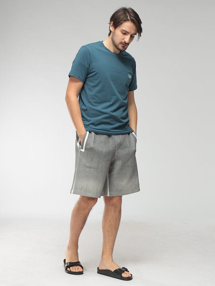 サイドに配されたラインデザインが、スポーティーかつ都会的な印象を与えるエンポリオアルマーニのショートパンツです。綿をベースにポリエステルとエラスタンを混紡したストレッチ素材を採用し、動きやすさと型崩れしにくいタフさを両立しました。ウエストはゴムとドローコード仕様で、リラックスした穿き心地を叶えます。計4つのポケットを備えた実用性も魅力で、春夏のレジャーから街着までアクティブに活躍する一着です。
