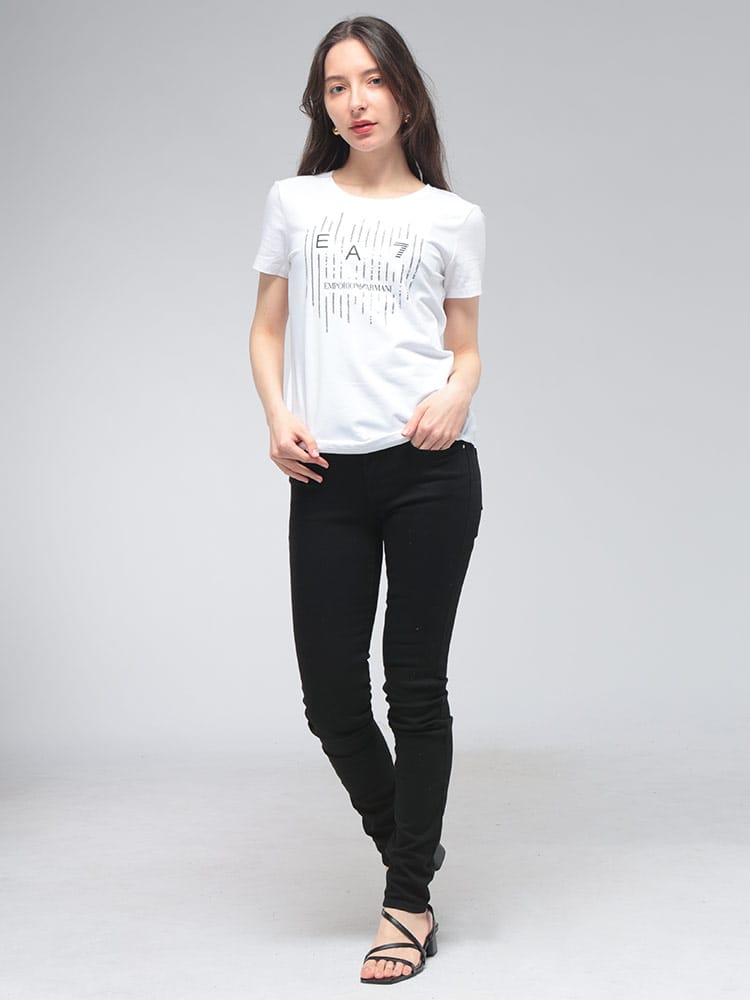 フロントのロゴプリントに繊細なビーズデザインを施し、スポーティーな中に華やかなアクセントを添えた半袖Tシャツです。EA7らしいアクティブな機能性と、女性らしさを引き立てる煌めきが絶妙に融合した一着。肌馴染みの良い柔らかな素材感で、春夏シーズンのデイリーユースから軽めのスポーツシーンまで快適に彩ります。シンプルながらも上品な主張があり、カジュアルな着こなしをクラスアップしてくれるアイテムです。