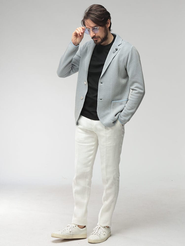計算されたシャープなカッティングと、柔らかな仕立てが絶妙なバランスを保つ一着です。体に自然と馴染む軽やかな着用感でありながら、崩れすぎない上品なシルエットが、大人の男性にふさわしい落ち着きを与えてくれます。ビジネスシーンでのジャケパンスタイルはもちろん、Tシャツやデニムと合わせた休日の着こなしまで、幅広く活躍します。日々のコーディネートに洗練された空気感を添えてくれる、頼れるアイテムです。