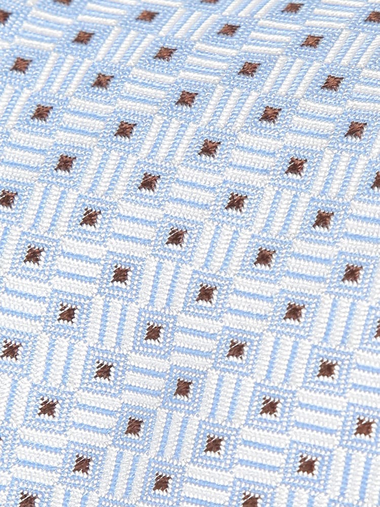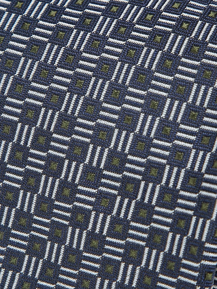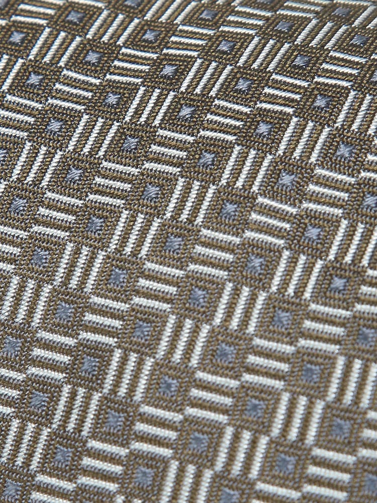 上質なシルク100%の生地に、格子柄とドットを組み合わせた繊細な意匠が光る一本です。クラシックなモチーフを現代的に昇華させたデザインは、エンポリオ アルマーニらしい洗練された遊び心を演出します。光沢を抑えた上品な質感が、ビジネスからフォーマルな席まで、胸元を端正に引き締めてくれます。大切な方へのギフトとしても喜ばれる、時代に左右されないエレガンスと汎用性を兼ね備えた仕上がりです。