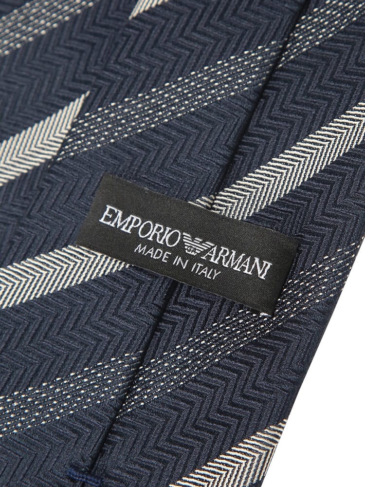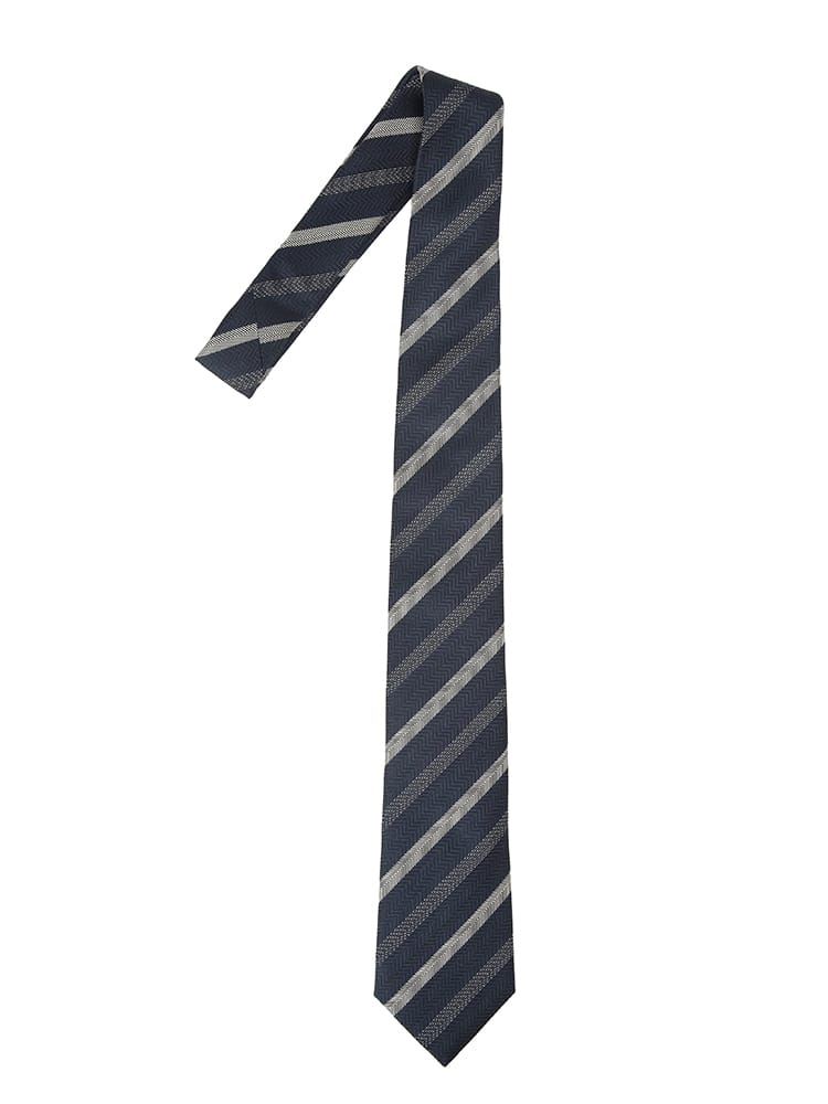 上質なシルク100%素材を使用した、クラシックなレジメンタル柄のネクタイです。伝統的なストライプデザインにエンポリオ アルマーニらしい現代的な配色を施し、凛とした知的な印象を演出します。滑らかな質感と適度なハリが美しいディンプルを作り出し、Vゾーンを端正に引き締めます。ビジネスシーンでの信頼感を高めるだけでなく、フォーマルな場やギフトにも最適。洗練されたスタイルを求める男性におすすめです。