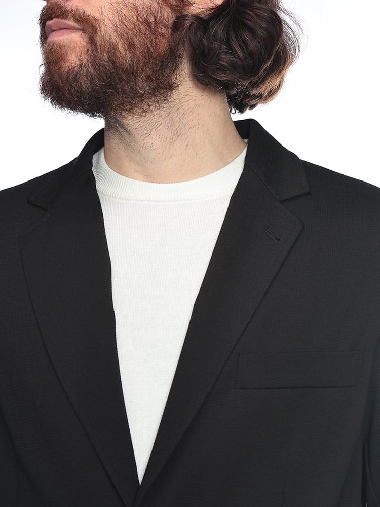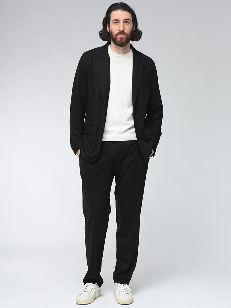 洗練されたテーラリングと現代的な機能性が融合した、3Dマイクロテクスチャー仕上げのテクニカルジャージー製シングルジャケットです。表面に施された繊細なテクスチャーが光の加減で奥行きのある表情を生み出し、従来のジャージージャケットとは一線を画すラグジュアリーな品格を漂わせます。驚異的なストレッチ性を誇る素材は、身体の動きにしなやかにフィットし、アクティブなビジネスシーンでも一切のストレスを感じさせません。無駄のない美しいシルエットと2つボタンの端正な意匠が、都会的でスマートな男性像を演出。同素材のパンツとのセットアップはもちろん、デニムやチノパンを合わせたジャケパンスタイルでも圧倒的な格好良さを約束します。