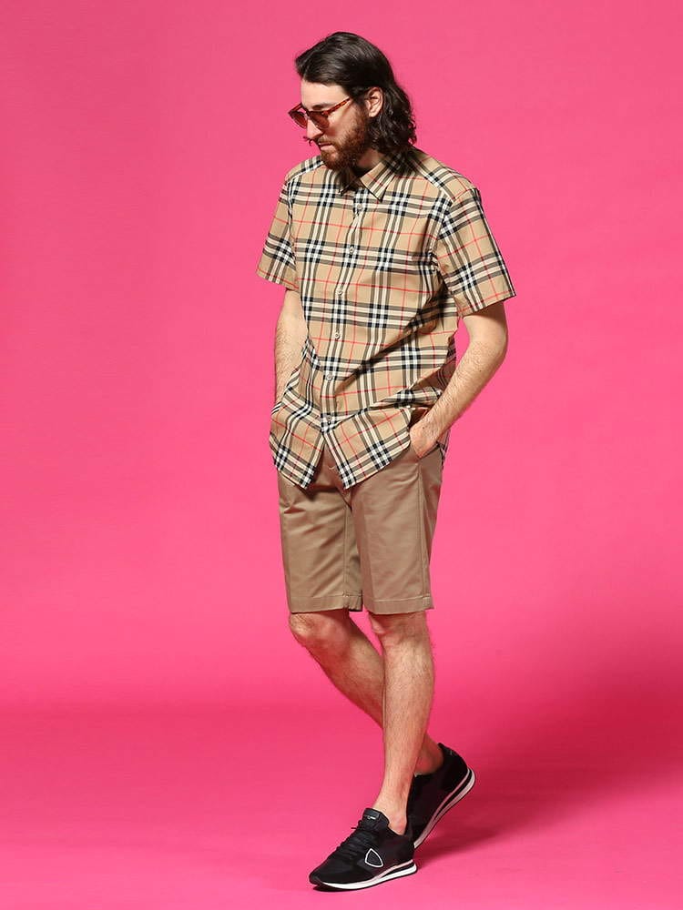 BURBERRY (バーバリー) チェック柄 コットンポプリン 半袖 シャツ BB8020869