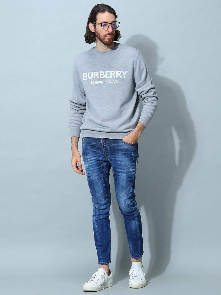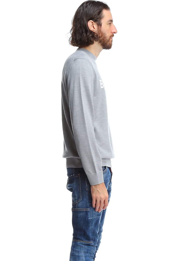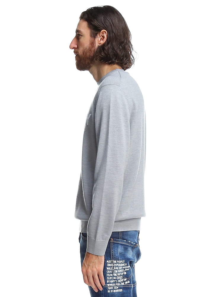 イタリアで織り上げたウールブレンドのクルーネックセーター。コントラストなレターのロゴをインターシャ編みでフィーチャーしました。イタリア製。