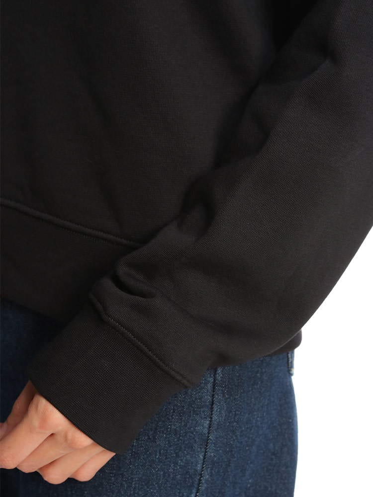 定番のスウェットですが、今回は流行のリラックスフィットのアイテムをご用意しました!身幅は広めですが、着丈はそこまで長くないので野暮ったくならずデニムやロングスカートなどと合わせて頂いても可愛いです。寒い時期にはシャツをインしても当たりが出ないのでレイヤースタイルも楽しめますね!私は普段Lサイズですが、Lサイズでゆったり、Mでジャストでした。胸元にはクラシックなロゴプリントが同色で配されおり上品さがありますよね。左腕にはマークのワッペンが付いております。ごわつきのないスウェット生地なので長年ご使用頂けます。( スタッフS )