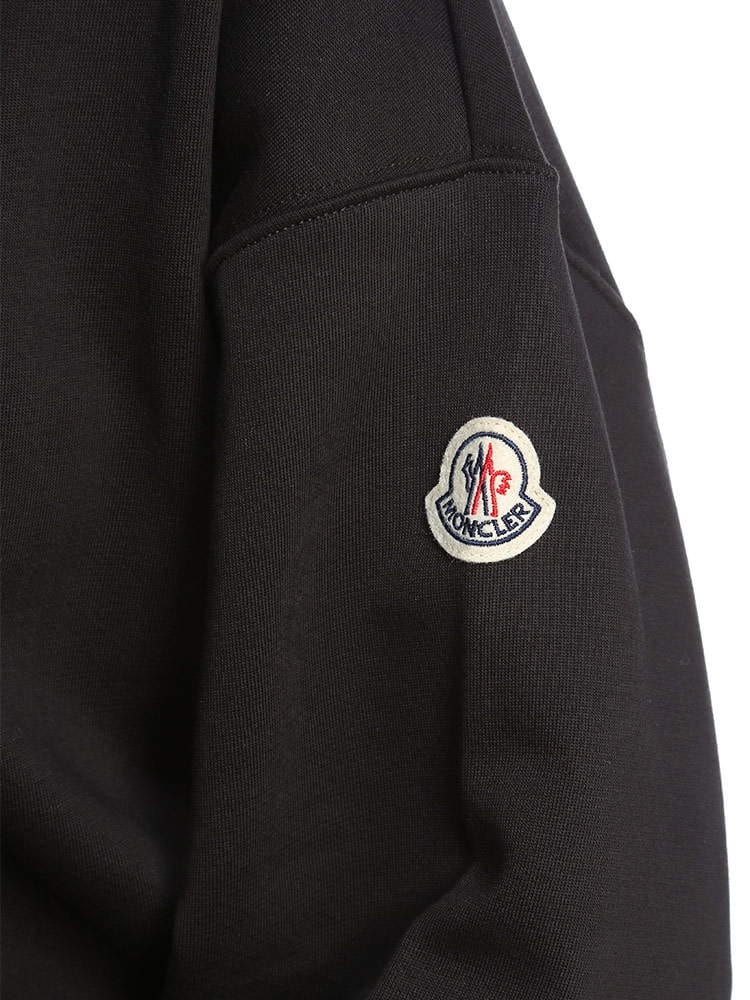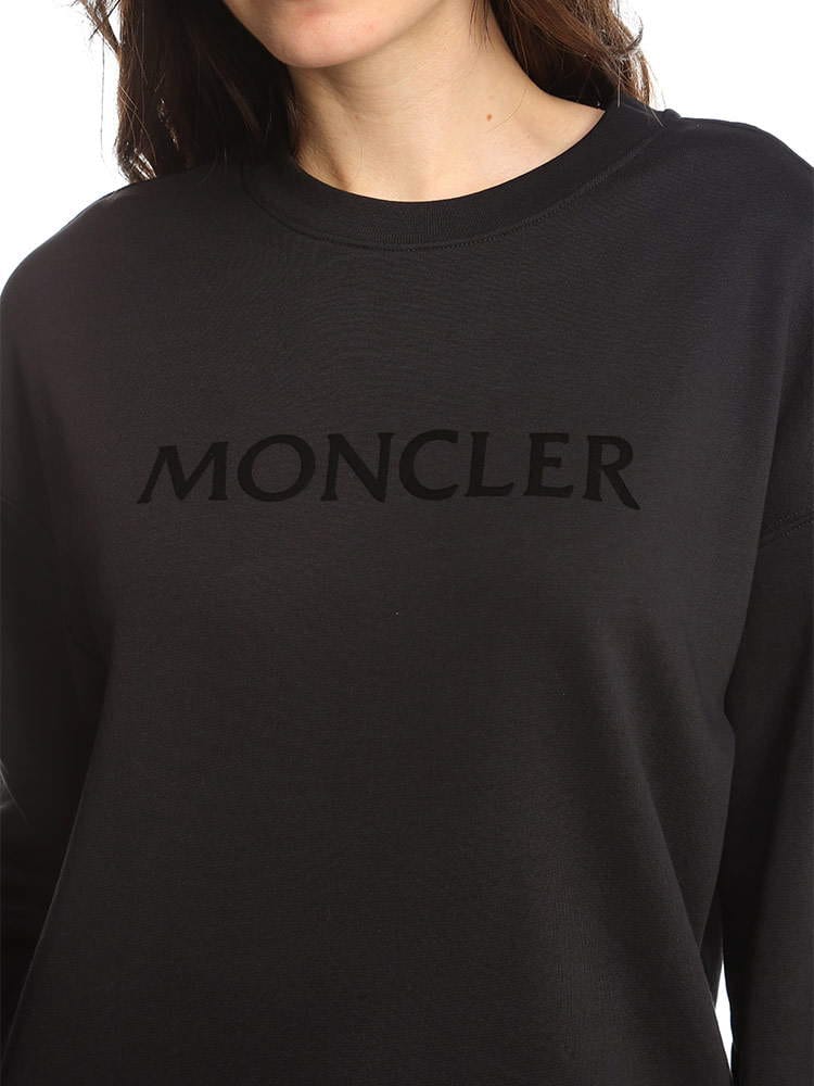 ブラッシュドコットンフリース素材を使用クルーネック長袖Monclerレタリングフロックプリント入りリラックスフィットのデザイン