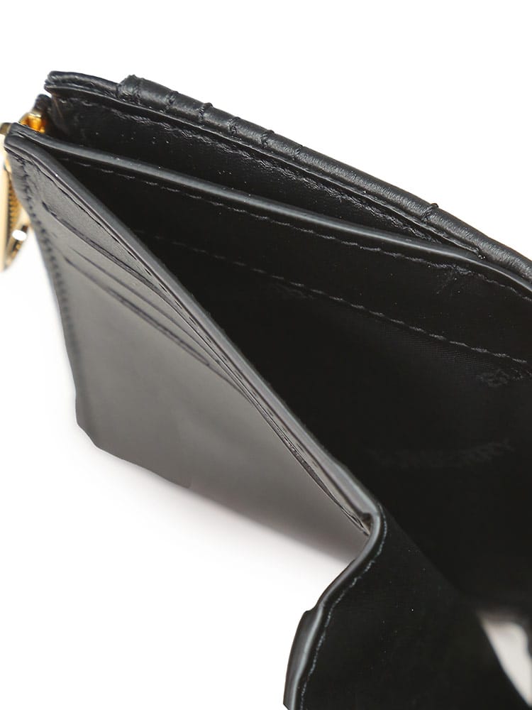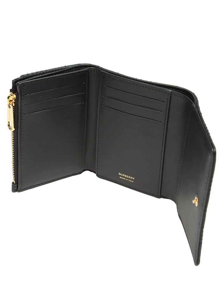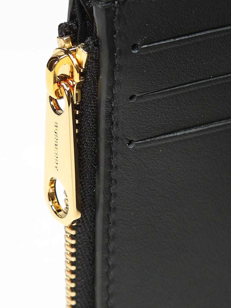 イタリアでなめし加工を施したラムスキンのキルティングで製作した2つ折り財布。ゴールドメッキのトーマス・バーバーリー モノグラムをフィーチャーしました。複数のポケットとカード収納を配したコンパクトなデザイン。フロントフラップのスナップで開閉。6枚分のカード収納。ジップ付きコイン入れ。紙幣入れ。スリップポケット×3。レザーの端はハンドペイント仕上げ。光沢のある金具。イタリア製。