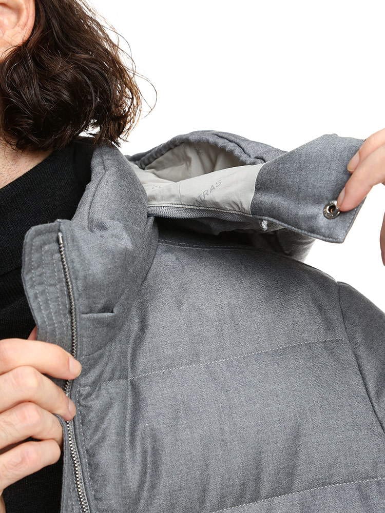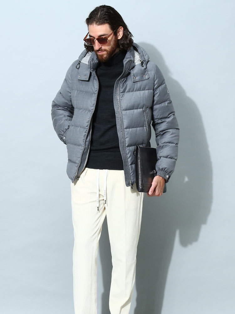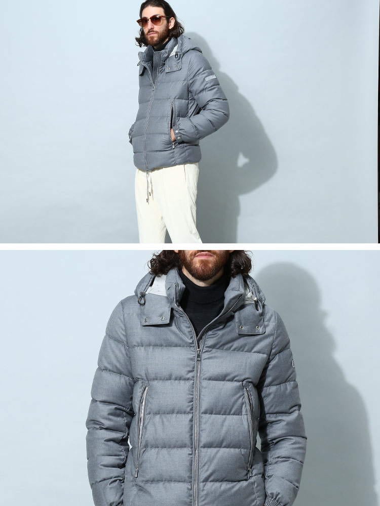 素材 :[表地]ウール95% シルク5% [裏地]ポリエステル100% [中綿]ダウン90% フェザー10%