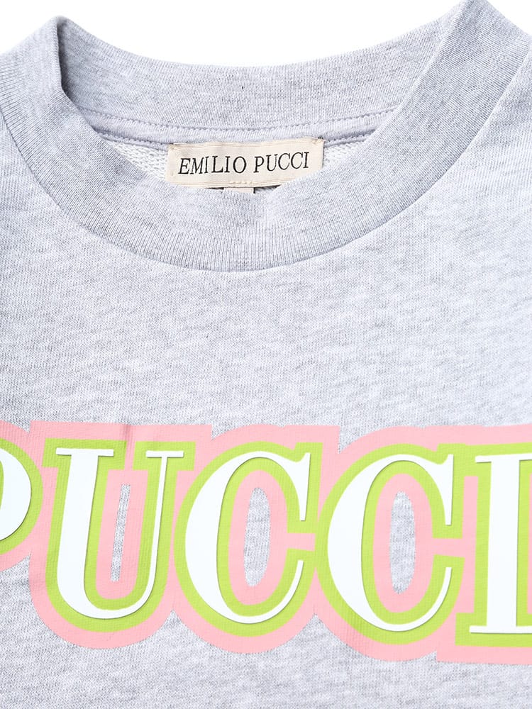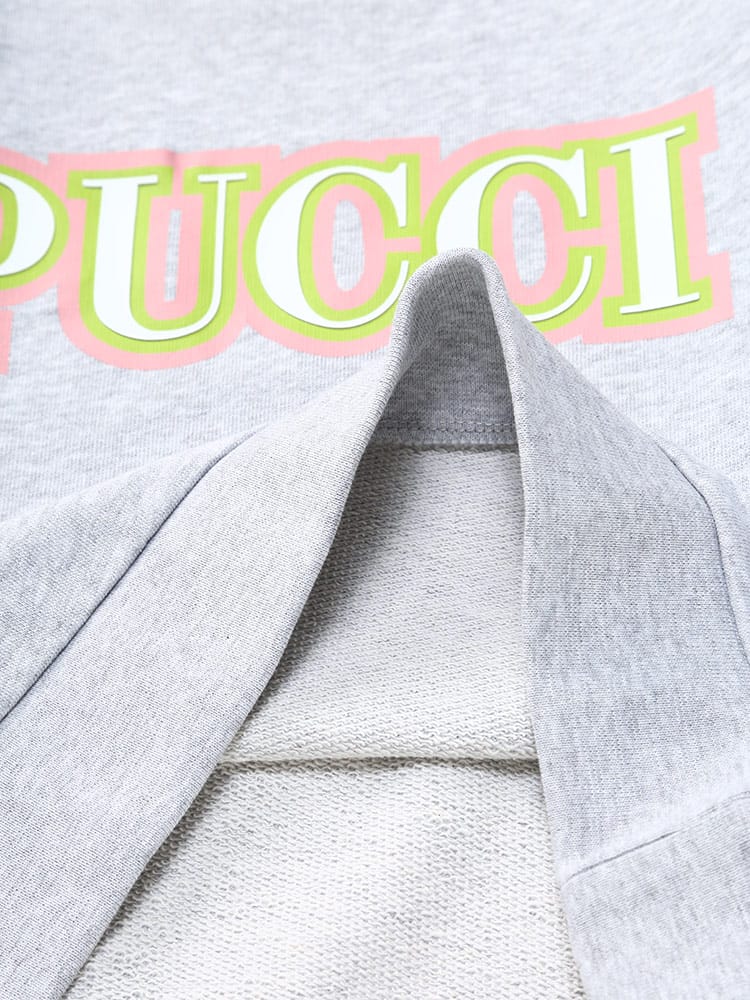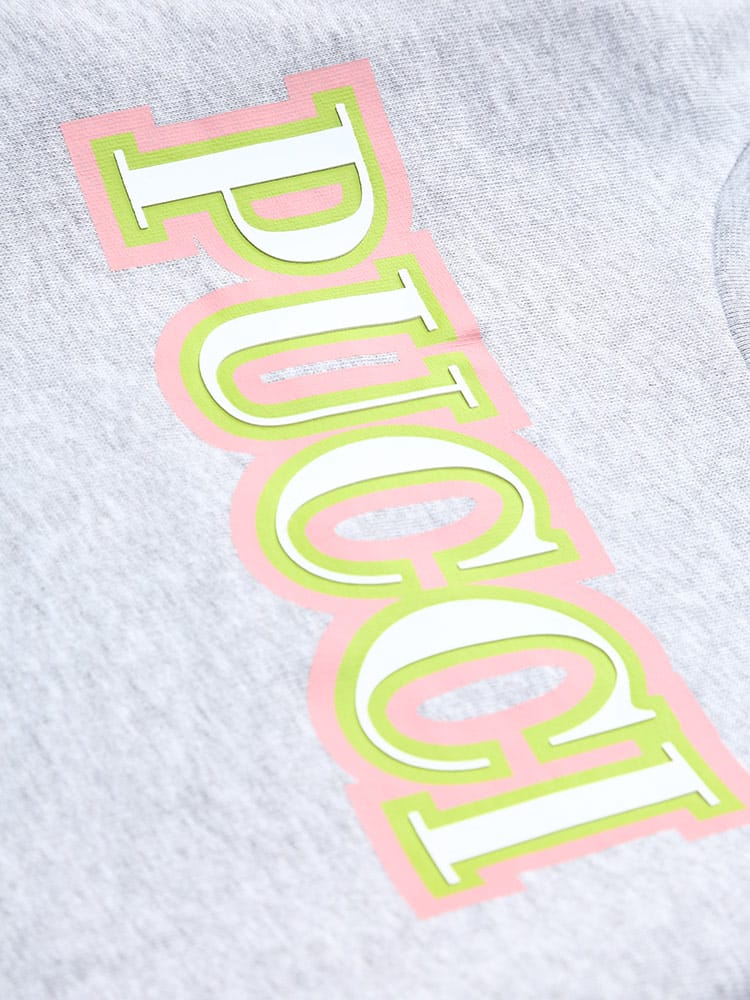 代名詞の幾何学模様のプッチ柄でなくてもフロントにPUCCIらしい鮮やかなロゴがプリントされていてます。