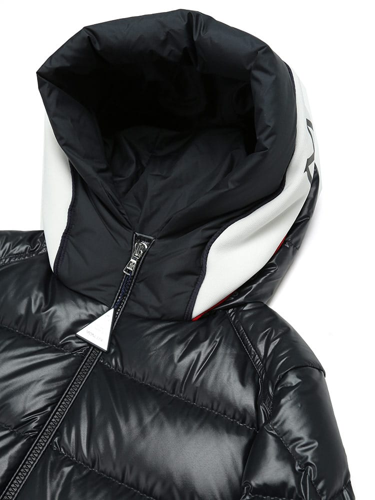 フードの大きなロゴが目を惹きますが、フードのジップを閉じれば非常にシンプルなデザインへ。