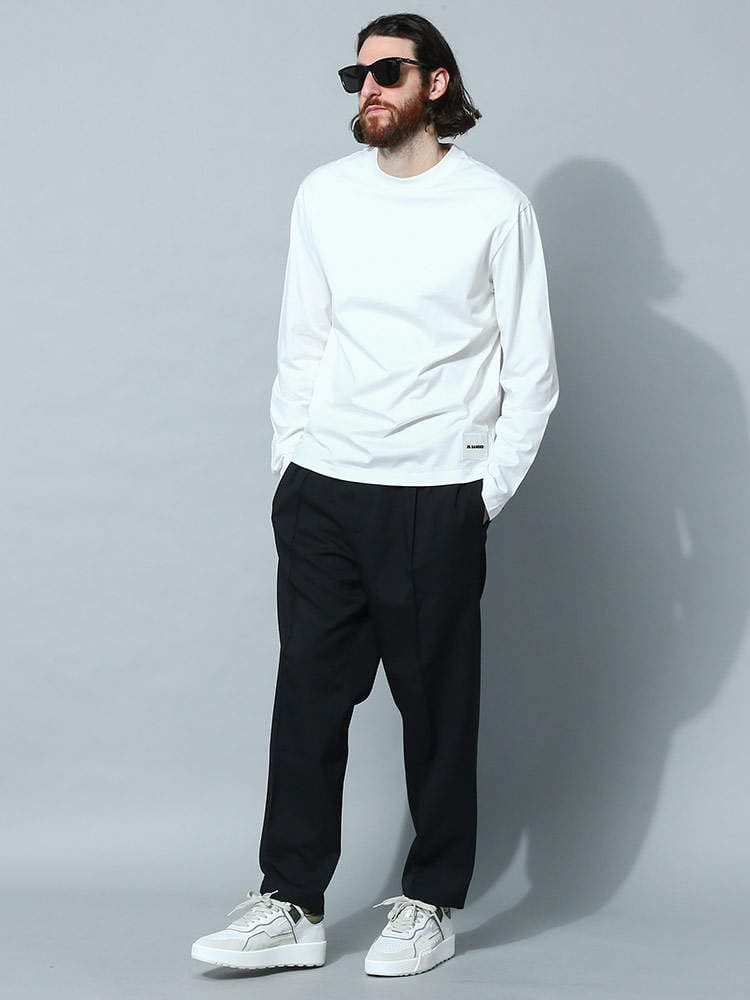 ドイツ人デザイナー、Jil Sander (ジル・サンダー) の名を冠したこのブランドは、現在はクリエイティブ ディレクターの Lucie Meier (ルーシー・メイヤー) と Luke Meier (ルーク・メイヤー) 夫妻によって率いられ、長年のミニマルなデザインをボリューム アップしたメンズウェア コレクションが展開されています。 エレガントなディテールと独特のアレンジを加えることで、ファッション性と機能性が融合し、各アイテムに微妙なテイストが添えられています。 タートルネックとアレンジされたクルーネックでは、モノクロの配色にポイントとなるポップな色合いを加えて表情を与え、Jil Sander (ジル サンダー) 本来の微調整されたモダンなミニマリズムに忠実な仕上がりになっています。