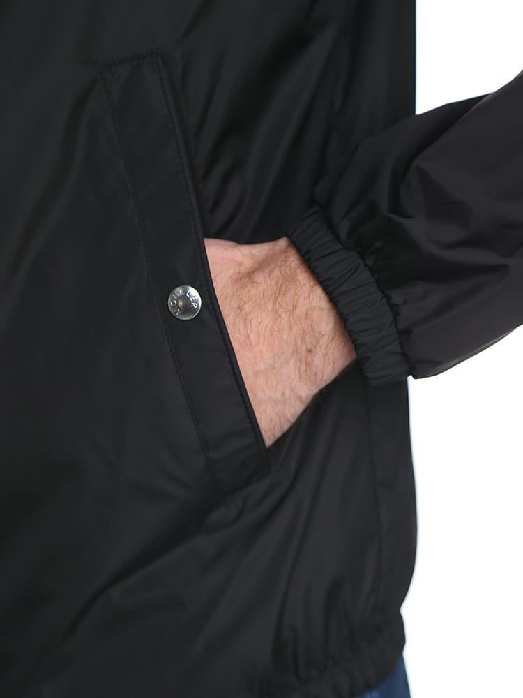 袖口は調節可能、スナップボタンでクローズ