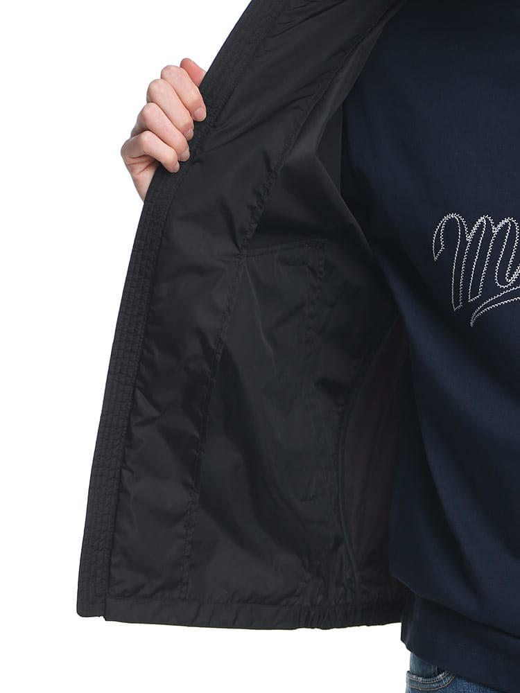 フードはドローストリングで調節可能