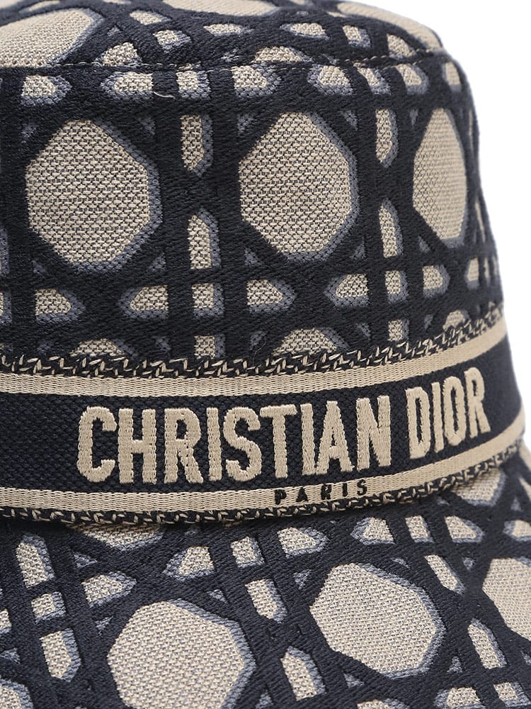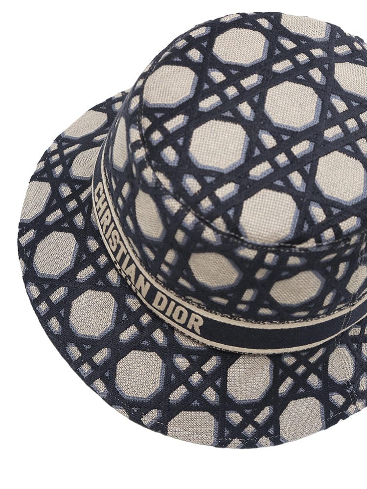 メゾンを象徴するモチーフに新たな解釈を加えた今シーズン注目のパターン、「トワル ドゥ ジュイ ソレイユ」が映える「D-Bobby (D-ボビー)」ボブハット。太陽と三日月を重ね合わせ、花々をふんだんに散りばめて四季を描き出したデザインです。全面に刺繍を施したホワイト & ネイビーブルーのコットン混素材を使用し、コントラストカラーのChristian Dior Parisシグネチャーの刺繍入りバンドをあしらいました。